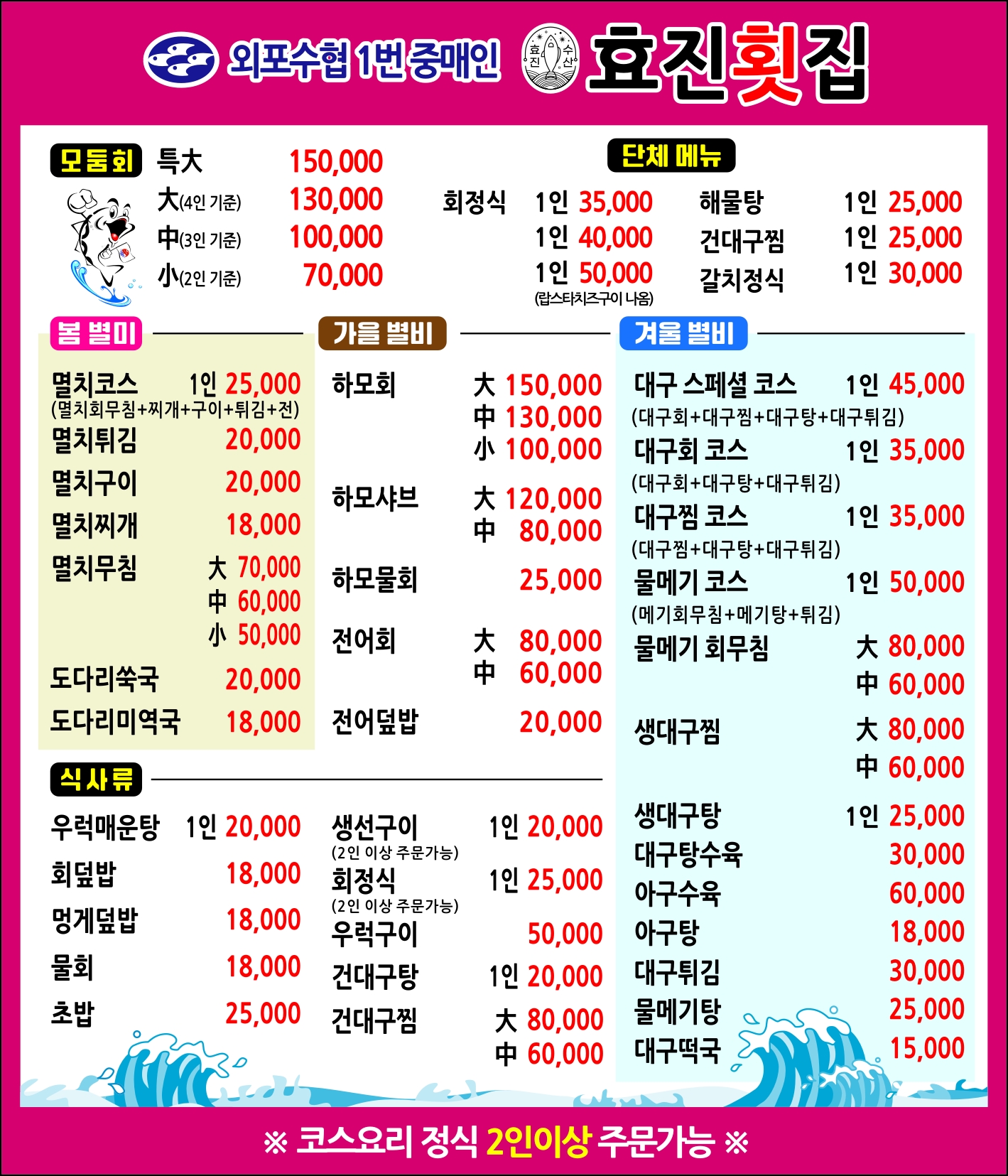 - 모듬회 특대 150,000원