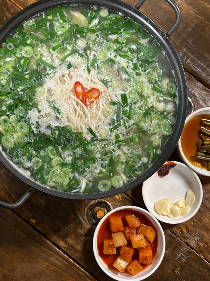 온대구 경대병원 근처 닭곰탕이 깔끔한 한식당 다희집 다희집 영업시간 월~토: 11:30~01:00 라스트 오더: 00:00 일: 18:00~01:00 라스트 오더: 00:00 정기휴무 없음 주 차 인근 주차장 한창 외래 진료를 다니던, 매우 더웠던 중복날. 우연히 방문하게 된 다희집에서 든든하게 닭곰탕을 먹고 기력 충전을 제대로 하고 왔다. 대구 경대병원 근처 닭곰탕이 깔끔한 한식당을 찾고 있는 분들이 참고하기 좋은 다희집 내돈내산 후기를 시작해 보겠다. 위치 대구 경대병원 근처에는 맛집이 꽤 많은 편인데, 다희집은 경대병원뿐만이 아니라 중구청에서도 가까워서 점심 식사를 하러 방문하기도 괜찮은 위치에 있다. 외부, 주차장 방문했을 당시에는 몰랐는데 다희집은 놀라운토요일에 방영된 곳이기도 하다. 처음 외관만 보면 동네에 하나쯤은 꼭 있는 오래된 맛집 같기도 했다. 주차는 인근 주차장을 이용해야 한다. 내부, 분위기 및 인테리어 내부는 굉장히 빈티지한 느낌이다. 4인석, 6인석, 2인석 테이블이 있고 주방 쪽에는 바 테이블이 있어 혼밥 하러 방문하기도 좋을 것 같다. 매장 내부가 넓지는 않은데, 안쪽에 공간이 있어 그런지 크게 답답한 느낌은 들지 않았다. 뭔가 동네 친구들이랑 슬리퍼 끌고 술 한잔하러 방문하고 싶은 느낌의 식당이랄까. 내부 곳곳에 보이는 자기 암시 박수, 명언 등의 문구가 눈에 띄었다. 사장님이 약간 심상치 않아 보임.(p) 주방이 눈에 보여서 더 믿음직스러운 한식당 다희집. 메뉴 대구 경대병원 근처 맛집 다희집의 메뉴는 닭곰탕, 닭전골, 닭무침 등이 있다. 놀토 방영 메뉴는 닭전골인 것 같던데, 후기를 보니 닭무침도 인기 있는 메뉴 같았다. 메뉴 보다가 종합 정신병 치료제 하이볼에게 마음을 빼앗길 뻔했지만 견뎌냄. 주문 메뉴 닭곰탕 특 닭곰탕 (9,0) 1 (8,0) 1 물컵, 수저, 접시, 후추 등은 테이블에 비치되어 있다. 닭곰탕을 시키니 반찬은 깍두기와 마늘종 장아찌 그리고 소금이 함께 나왔다. 깍두기, 마늘종 장아찌 둘 다 닭곰탕이랑 잘 어울리는 반찬들이라 같이 먹기 좋았다. 닭곰탕 특 특으로 시킨 닭곰탕은 일반 닭곰탕과 비교했을 때 냄비 크기가 살짝 더 컸다. 첫인상은 양이 많아 보였다기보단, 대파를 듬뿍 줘서 좋았다는 생각이 먼저 들었다. 참고로 공깃밥 포함이라 밥은 따로 주문하지 않아도 된다. 일단 국물부터 호록. 깔끔한 국물 맛이 참 좋았다. 싱거울 줄 알았는데 나름 간이 되어있다. 처음 봤을 때는 특이 맞나 싶었는데, 냄비 크기 차이도 있지만 안에 들어간 살코기가 장난이 아니다. 닭고기가 아주...
