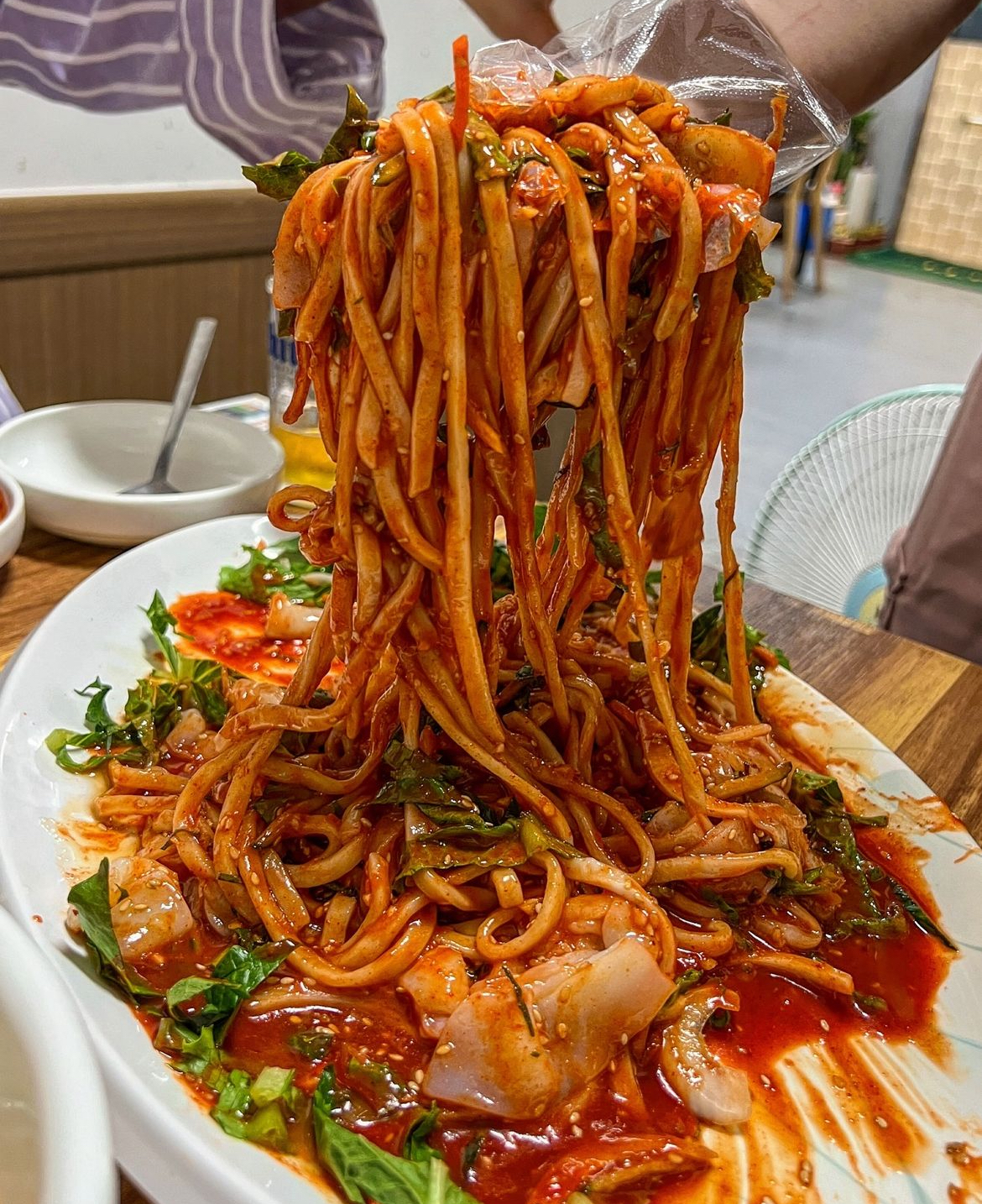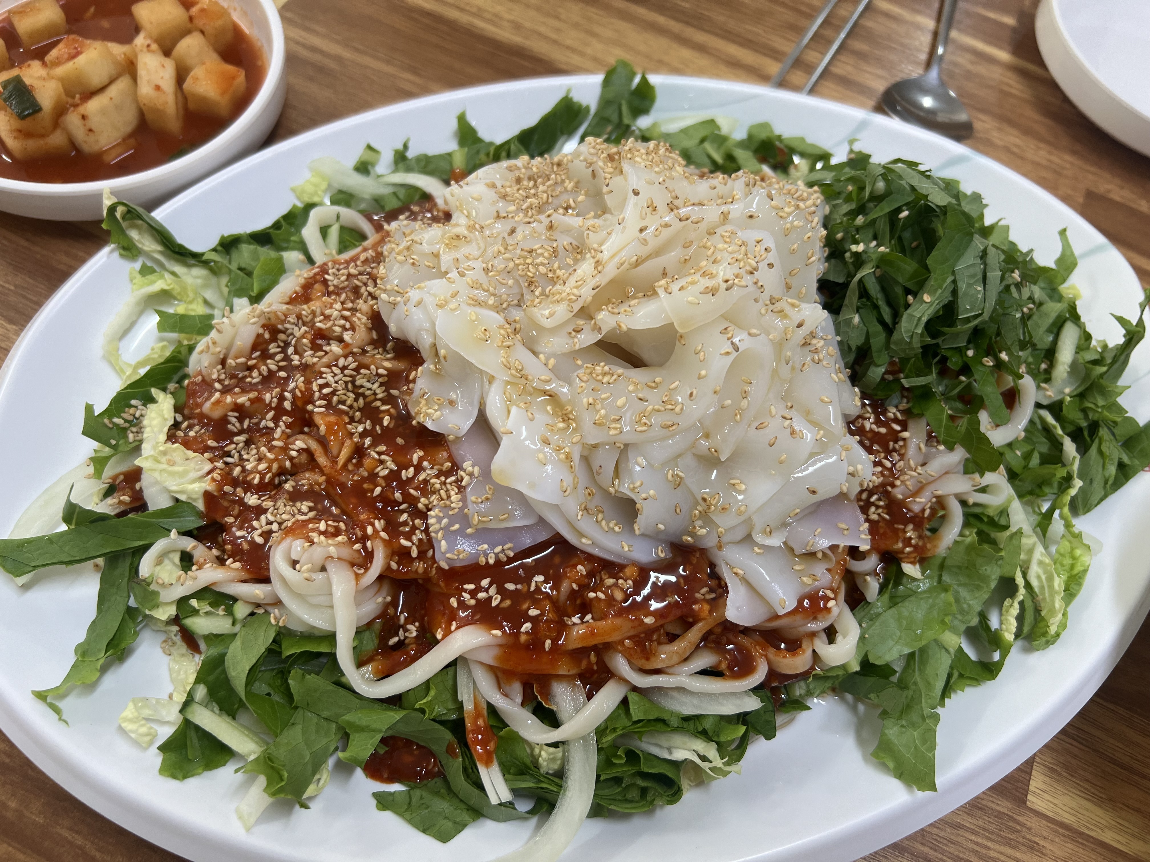 호야네창고남편이 맛있는 칼국수 먹으러 가자고 해서 왔어요 한치비빔쟁반 ~ 와우 양도 푸짐하고 맛있어요 칼국수도 면이 쫄깃쫄깃~ 맛나요 ^^