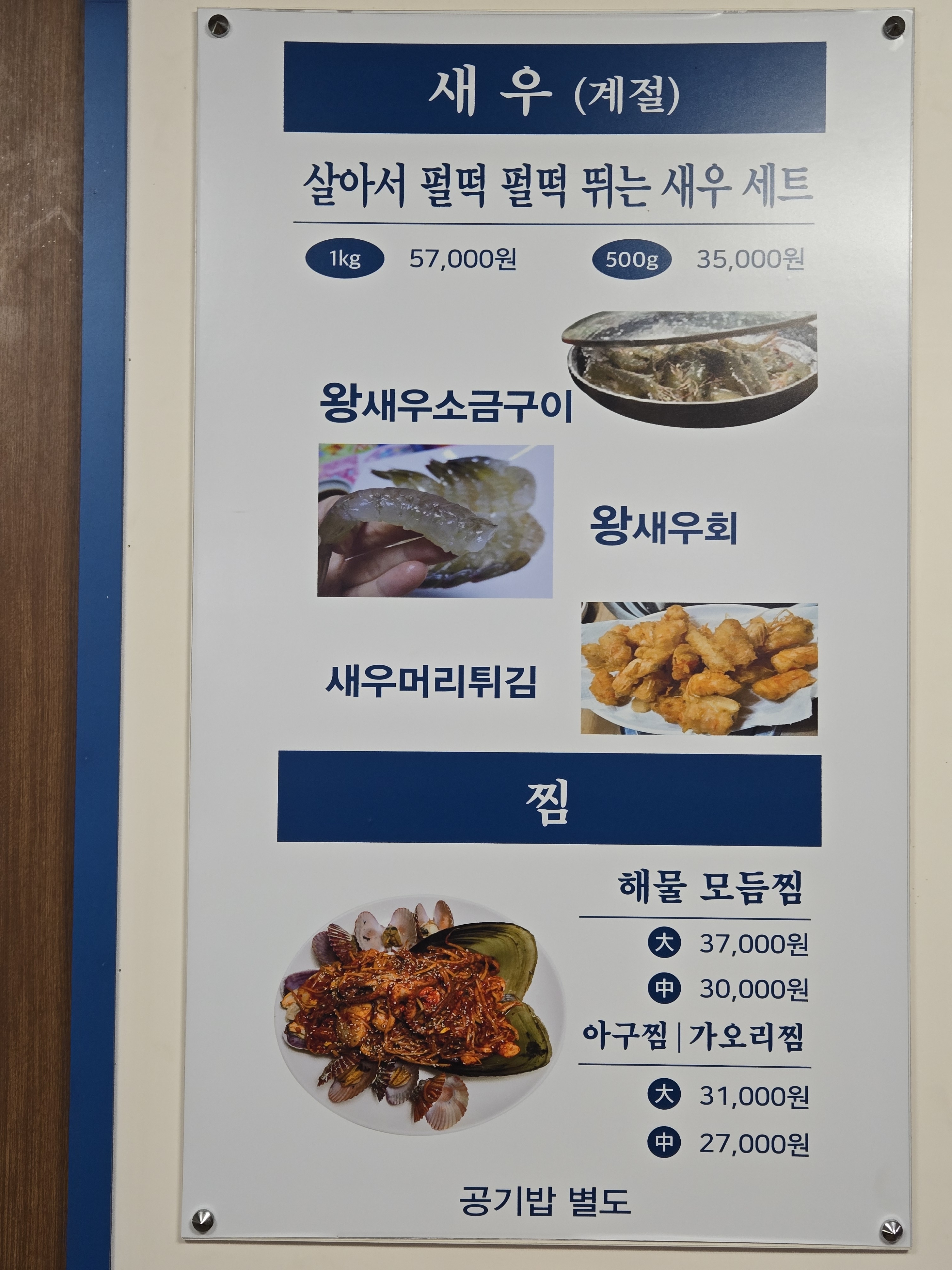 - 왕새우소금구이/왕새우회/새우튀김1kg 54,000원
