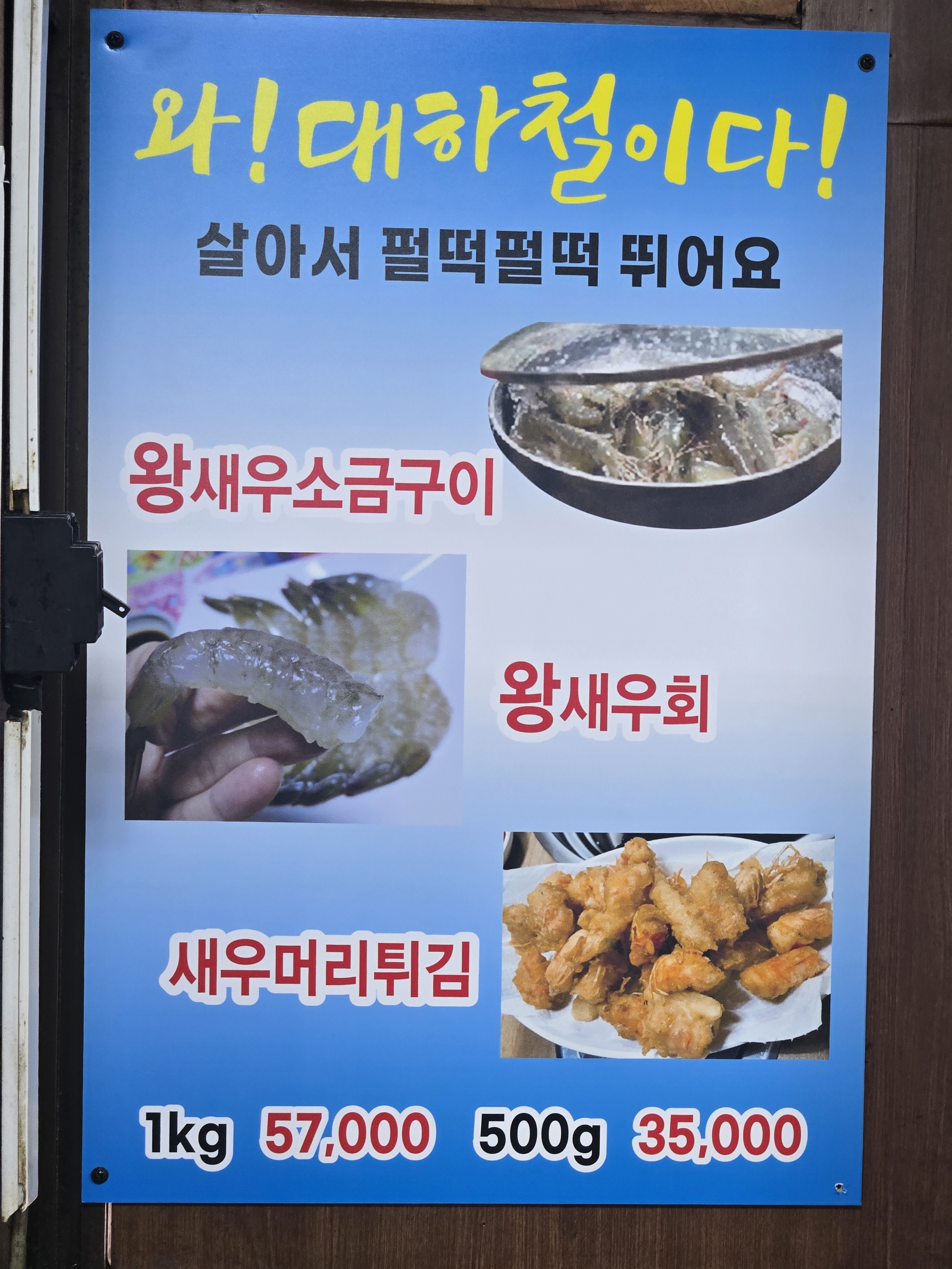 - 왕새우소금구이/왕새우회/새우튀김 500g 35,000원