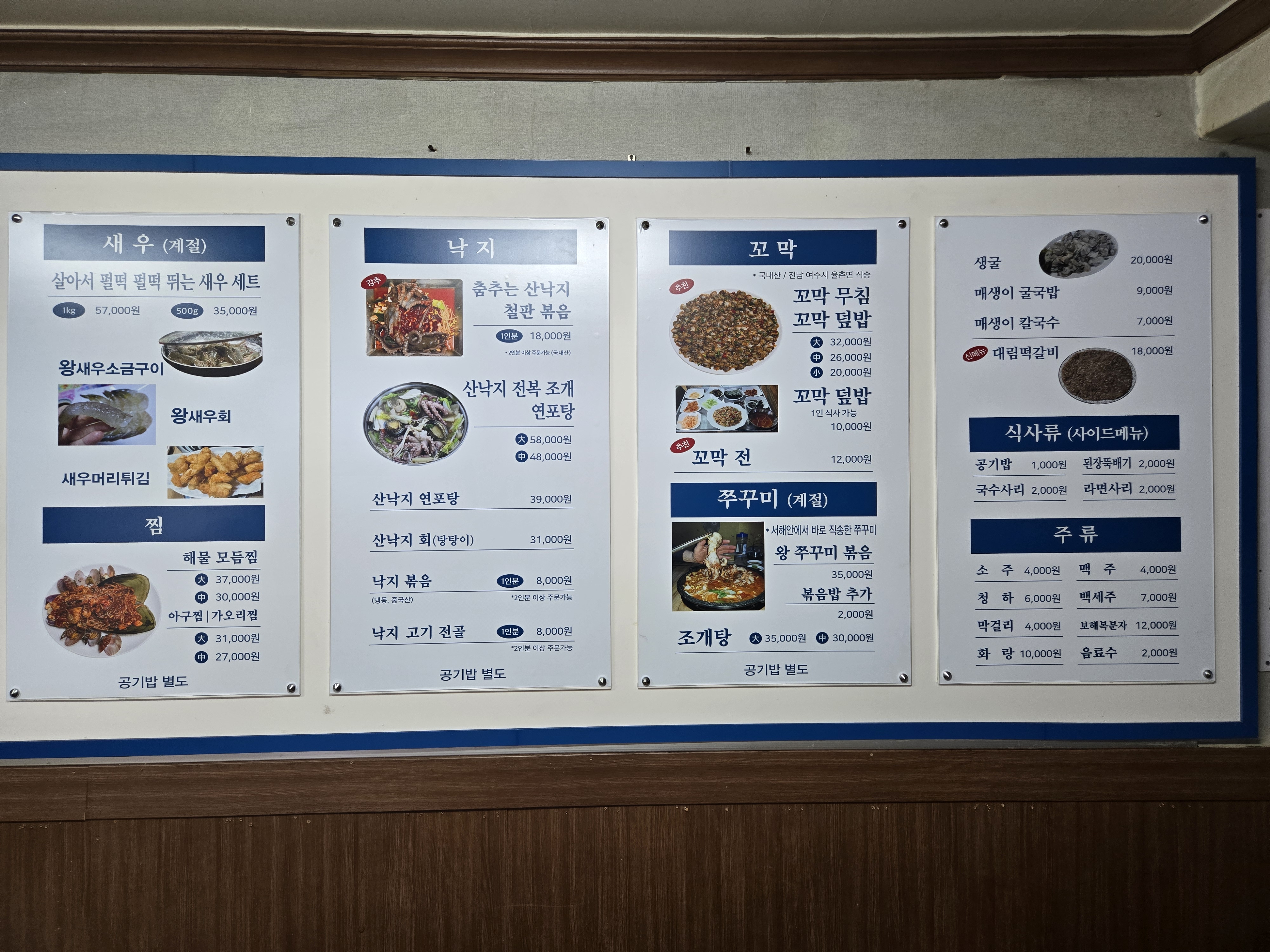 책공주가보고 싶었던곳이라 방문했어요 직접 잘라주시는데 이렇게 큰 낙지는 처음봤어요 다리 끝부분은 소금장에 나머지는 빨간국물에 들어가요 밑반찬 하나하나 다 맛있어요 새우 먹으러 또 갈게요~^^