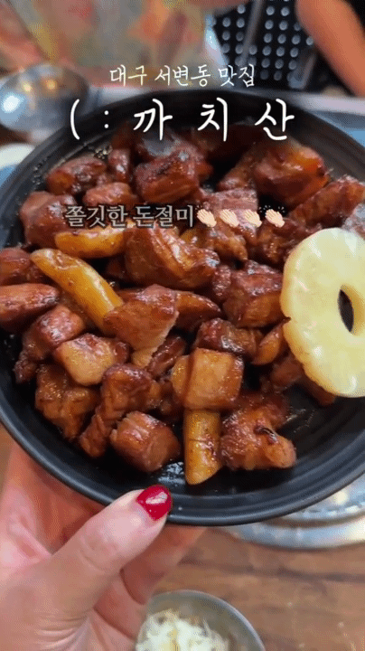 냥쌤안녕하세요 잇님들 ^^ 냥쌤입니다 오늘은 대구 3대 돼지갈비 맛집 까치산 갈비에 다녀왔습니다 여기가 2024년 한국의 미슐랭 블루리본 서베이 맛집에 선정되기도 했고 23년에는 방송에도 출연하기도 해서 이미 많은 분들에게 인증받은 사랑받는 집이거든요 처음에 네비가 안내하는 쪽으로 갔는데 세상에 뒷문이더라구요 뒷문으로 가니 친절히 주차 안내가 되어 있었구요 가게 앞쪽으로 오시면 굉장히 넓은 주차장을 보실 수 있어요 대구 돼지갈비 맛집 주차장 다운 모습이었습니다 또 이미 외관에 북구 모범음식점 딱 붙어 있는거 보이시죠 그리고 한돈 인증점! 이라고 소개 되어 있는데 직접 제조한 특제소스로 양념하고 2대째 전통방식으로 구워내는 돼지갈비 맛집을 운영하고 계신데요 무려 1981년부터 지금까지요..대단하지 않나요? 거기에 배민이나 다른 건 다 좋은데 요즘 특히나 제가 가게 갈 때 마다 찾게 되는 저 온누리 가맹점!!! ㅋㅋㅋ 굉장히 반가웠어요 ㅎㅎ 여기 들어가자마자 진짜 독특하다고 생각했던건 저 땅따먹기 판이었어요 그냥 보자마자 슬며시 웃음짓게 되더라구요 그리고 사장님이 야구 팬이신가 싶을 정도로 ㅎㅎ 많은 선수분들이 또 다녀왔다 가신거 같더라구요 이런 싸인 중요하잖아요? 그리고 여기 사장님의 섬세함이 진짜 말도 못한다 생각했던게 저 아기 수저 소독기 보이세요 ? 저거와 함께 아이스크림, 놀이등 아이들이 엄빠 기다리면서 시간을 보낼 수 있는 요소가 많았고 화장실에 따뜻한 물 안 나오니깐 가게 안에 손 씻는 장소를 따로 만들어두셨더라구요 진짜 세상세심...ㅠㅠ 이게 음식에 까지 녹아있으니 넘 행복한 시간이더라구요 ㅎㅎ 내부는 꽤 넓은 편이었고 따로 고기를 구워주시고 직접 서빙해주시니 넘 좋더라구요 ㅎㅎ 그리고 굽는 장소를 볼 수 있어서 넘 좋았어요 나중에 영상도 찍어놨으니 영상으로 확인해주세요 ^^ 그리고 여성분들에게 넘나 중요한 이 화장실요 들어가보고 깜짝 놀랐잖아요 화장실 깨끗한건 말모말모 근데 UV 소독기 작동중에 온풍기 작동, 그리고 방향제까지 화장실 갔다가 감탄하기는 또 오랜만이었습니다 ㅎㅎ 기본찬으로 주셨는데 기본찬으로 나온 김치전 살짝 구워먹으니 이것도 꽤 맛도리였어요 이미 반찬먹어보고 여기 맛집이다!! 바로 느꼈거든요 ㅎㅎ 저희는 미나리와 함께 이 집의 시그니처인 돈절미를 시켜먹었어요 인절미에서 따온 이름이라고 하셨구요 이거는 더 좋았던건 이미 다 구워서 주셔서 바로 먹을 수 있었고 이거 먹자마자 왜 대구 연경지구 맛집으로...
