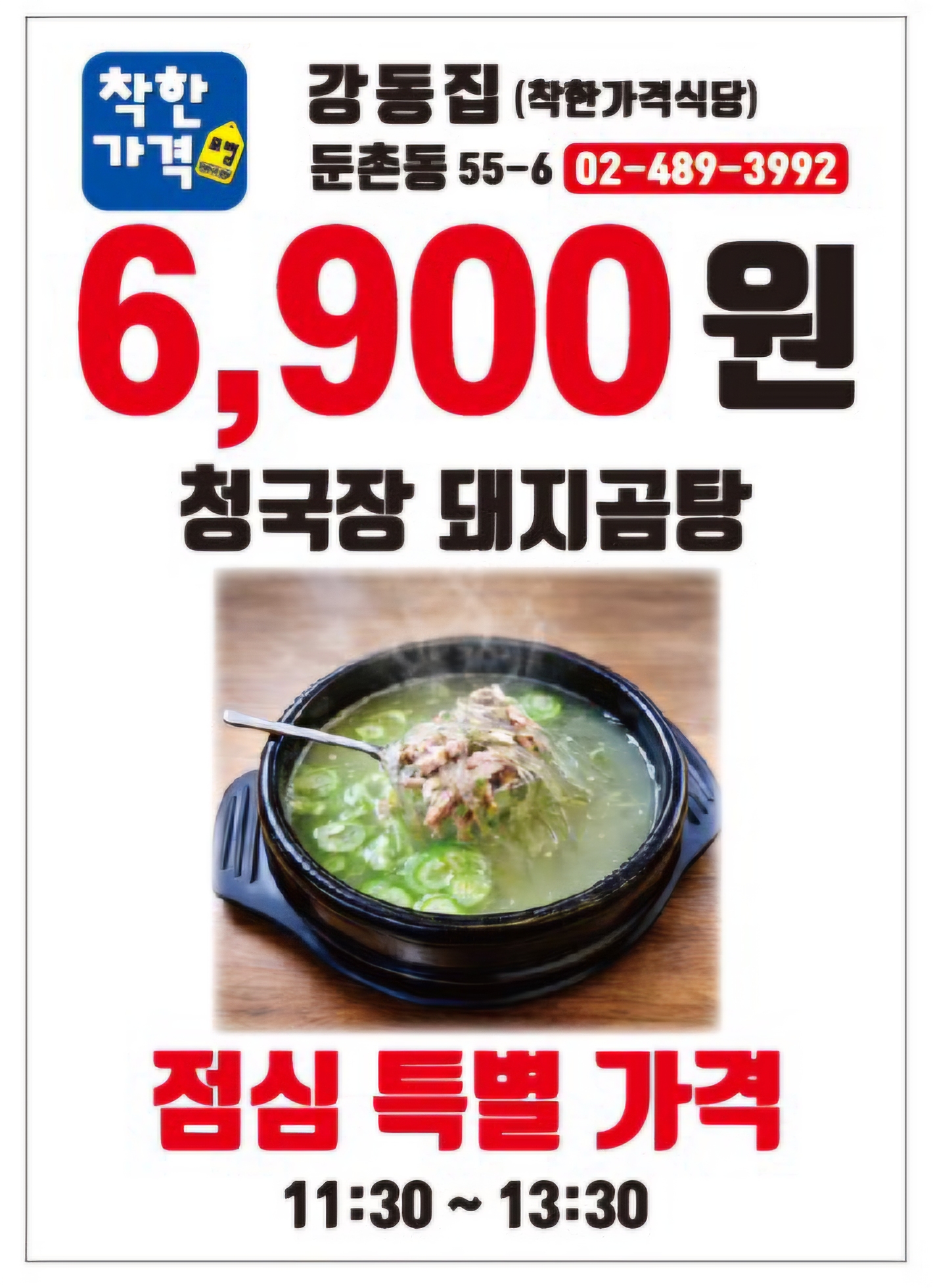 - 돼지곰탕 청국장 6,900원