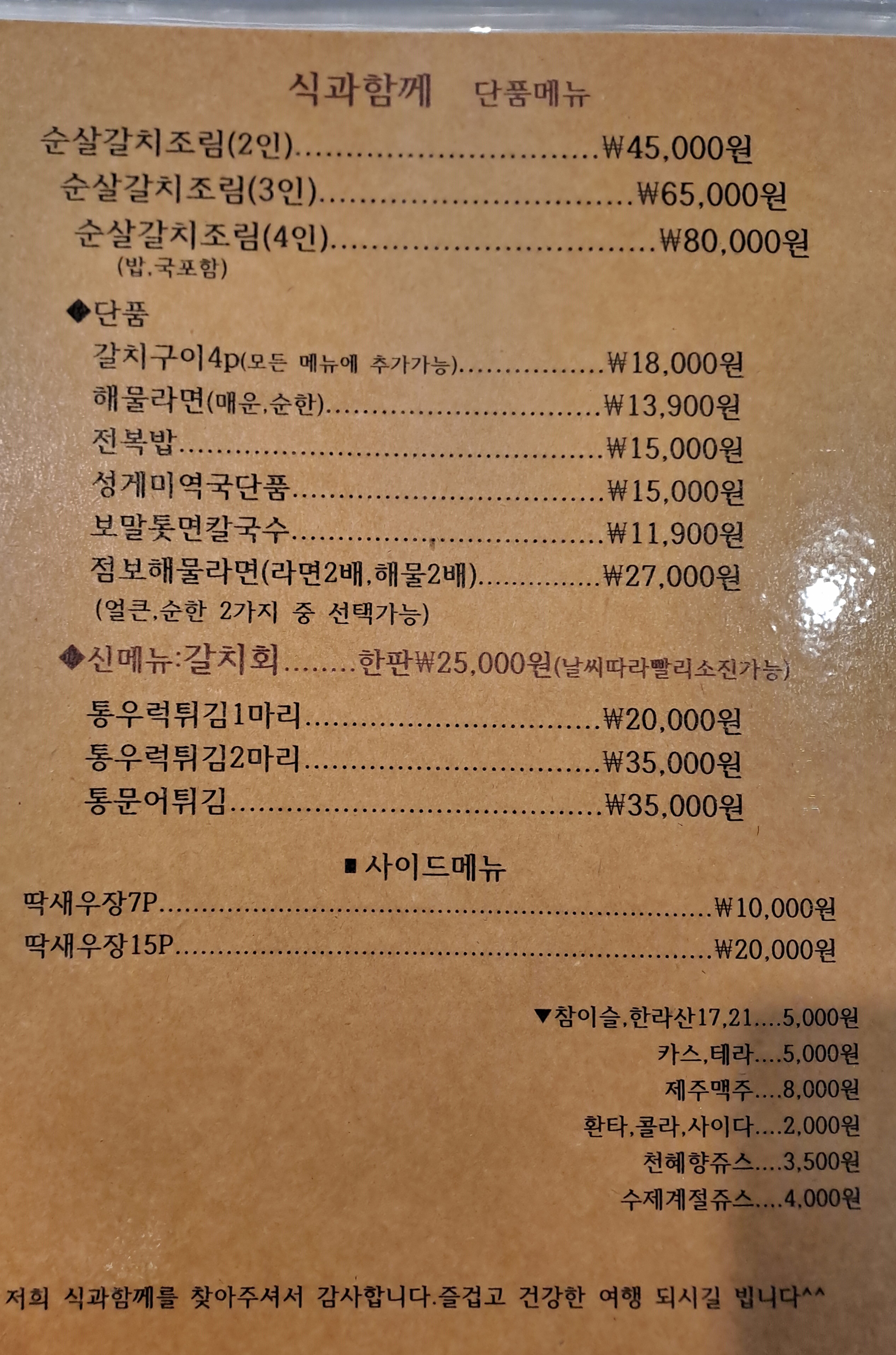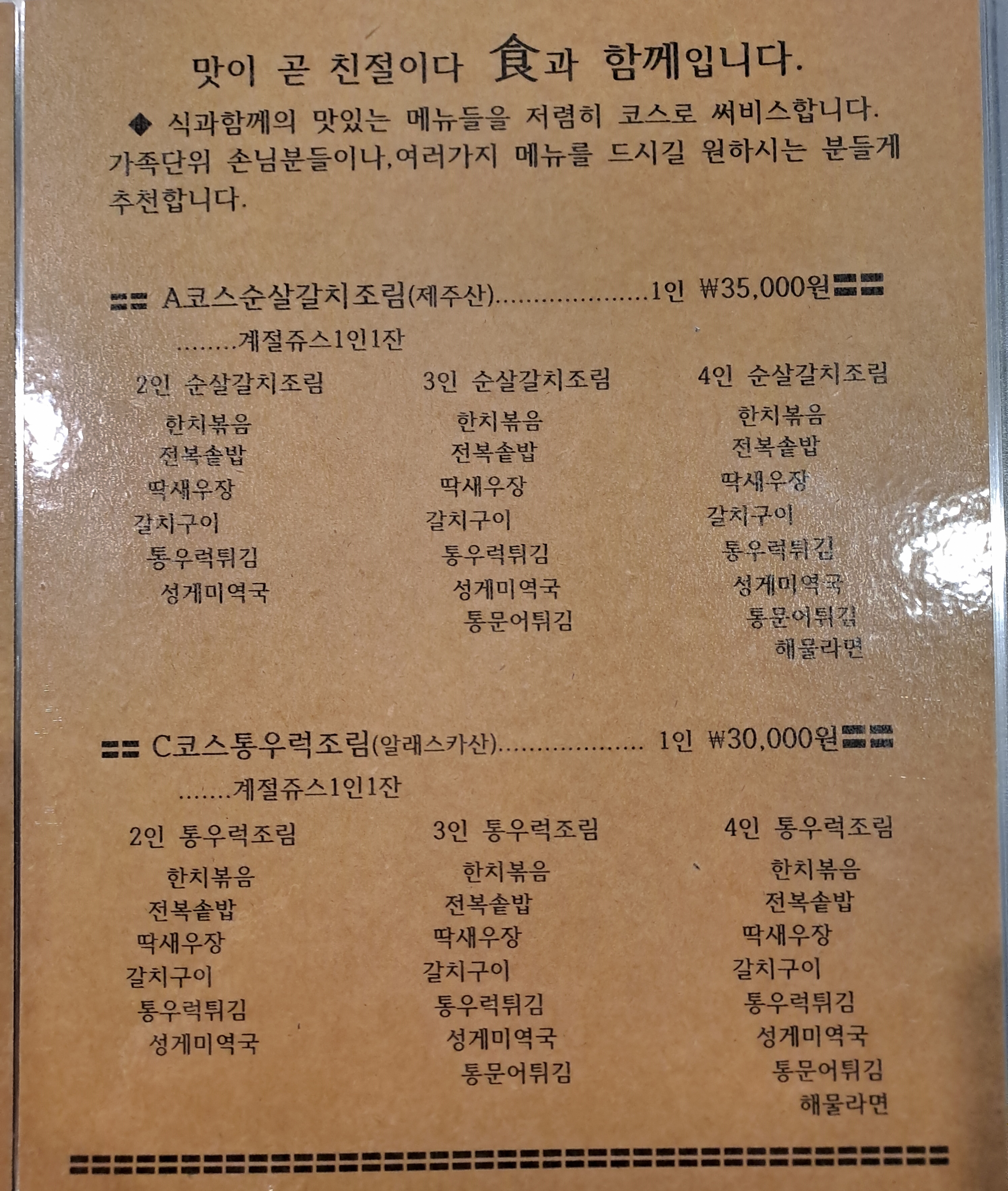 - 순살갈치조림코스 1인기준 35,000원