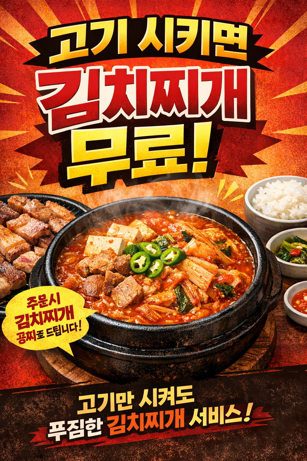 - 고기시키면 김치찌개가 무료! 0원