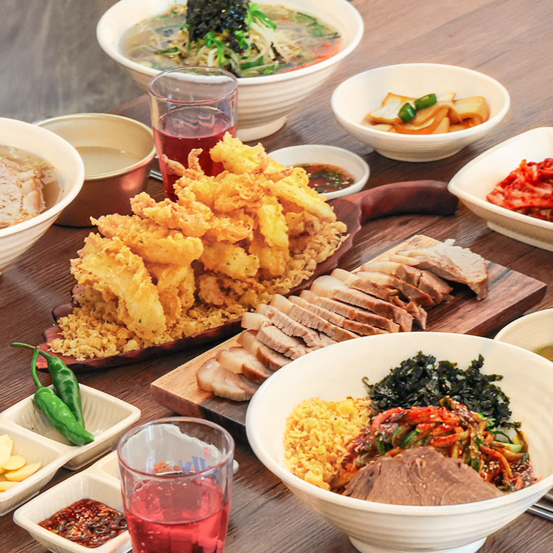 쩡이싸미여기 진짜 제주도 맛집 !! 국수랑 고기 다 맛있고 고기 야들야들 부드럽고 한치 튀김 입에서 녹음 비빔국수에 튀김가루 얹어서 싸먹음 또 기가 막힘 김치 겉절이 진짜 핵 존맛😋😍