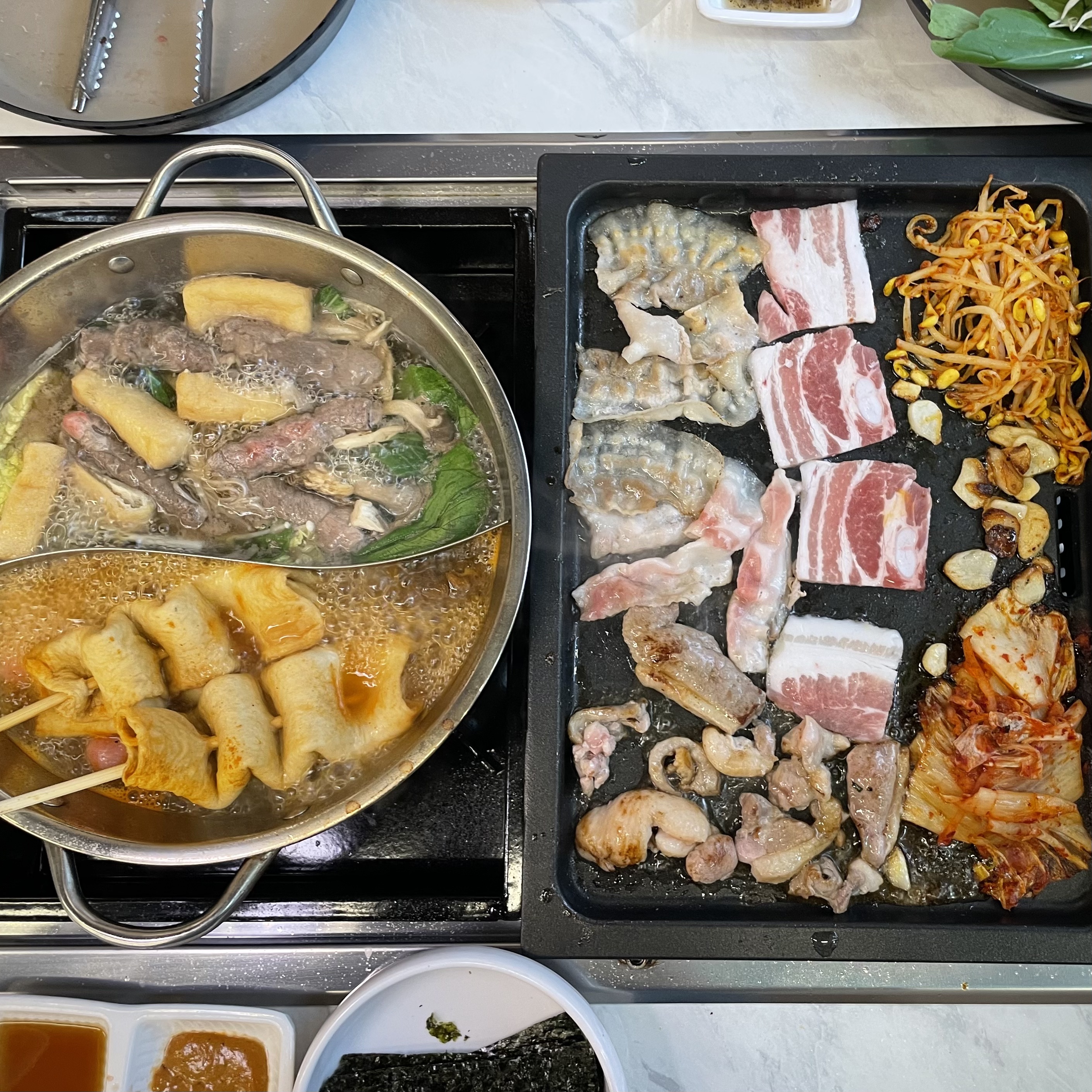 별난i와우 샤브에 고기를 구워서먹을수있다니 너무 좋네요 체인이 많이많이 생겼으면 좋겠어요 맥주무제한도 너무 좋고 정말 배터지게 잘먹었습니다