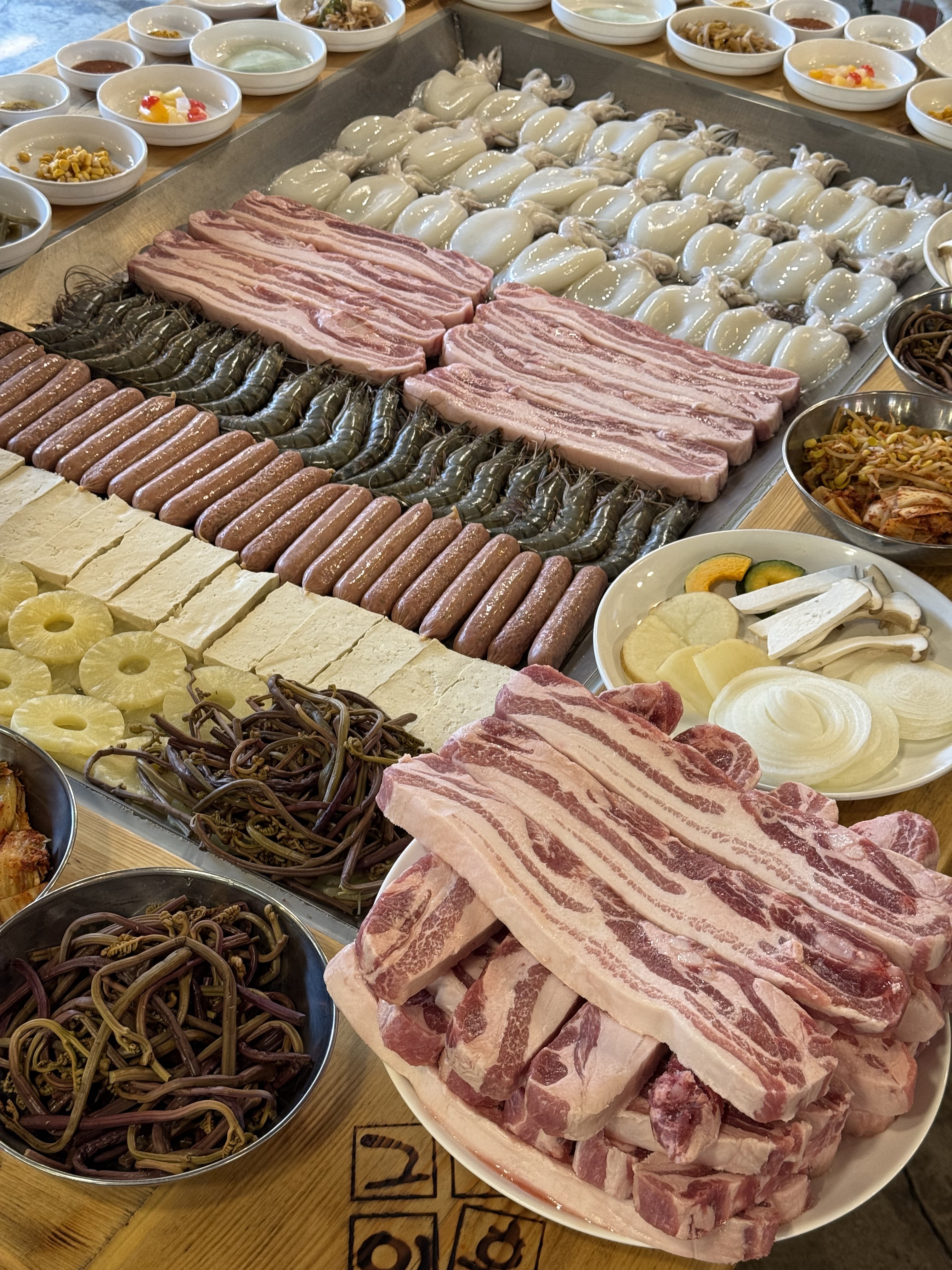 Memory얼마 전 우연찮게 엄마와 연고가 있으신 분이 하시는 고기집을 발견하셨다고 연락이 오셨는데, 종종 지인분들이나 손님들을 데리고 가셨다던 고기집으로 향했다. 위치는 고기집이 있나 싶을 정도로 하단을 지나 명지동 공장 사이사이에 위치하고 있는데 최근까지 핫하게 떠오르고 있는 에코델타쪽과 맞닿아있다. 불과 2주전쯤인듯한데 이때까진 오늘 포스팅한 날처럼 춥지않고 날씨가 꽤 따뜻한 편이라 가게문을 전부 개방해둔 상태였다. 건물자체가 굉장히 길고 커서 주차공간을 길 ~ 게 충분하게 있다. 만약 자체가 없다면 하단쪽에서 택시를 타고 넘어와도 큰 문제는 없을듯. 빙 둘러앉으면 8명 이상 앉을수 있을 정도로 엄청나게 큰 철판 테이블이 끝이 안보일정도로 쭉 펼쳐져있는데 공장동으로 쓰이는 부지를 매입하신건지 천장이 굉장히 높다. (실제 외관도 그리 보인다.) 아무리 인원이 많아도 사람에 치이지 않고 먹을수 있겠다는 생각이 들정도로 공간이 충분해보여서 엄청난 개방감을 보였다. 처음 방문하는 사람들을 위해 식사 전 안내사항을 곳곳에 명시해두었고, 무엇보다 고객들을 위한 사장님의 배려 엿보였다. 고기기름이 튀는 등을 배려해서 안경세척기나 옷이나 소지품을 보관하는 비닐이 구비되어있고, 아이가 동반되어있는 손님을 위한 아이의자는 물론 여성과 다양한 매너용품들을 비치해두셨다. 다만, 주류와 음료 추가반찬은 필요한 만큼 냉장고나 셀프바에서 들고와야하고 주류나 음료의 경우 계산 시 재차 확인이 필수이니 숙지해야한다. 삼겹살은 그람수가 표기되있으니 먹을양 만큼 주문하면 되고 점심/저녁 특선도 있으니 선호에 맞춰 주문하면 되겠다. 운전해서 다시 나가야하는 손님들을 위해서 무알콜 음료도 구비되어있으니 대리를 해야하는 부담감을 조금 덜 수 있을지도 모르겠다. 우리는 숙성삼겹살은 인원에 맞게 4인분을 주문했고 청도한재미나리(3,000원)를 추가했다. 고기는 일체 손댈필요 없이 직원들이 다 구워주시니 젓가락만 장전하고 있으면 된다. 먼저 고기를 올리고, 각종 야채나 구이들을 한입크기로 잘라주셨다. 철판은 열이 뜨끈뜨끈 할 정도로 열기가 가득해서 안내사항과 같이 철판쪽은 각별히 주의가 필요해 보인다. 앞, 뒤로 노릇하게 익은 삼겹살을 도마에 잘드는 칼로 한입크기로 썰어낸 후 한번희 불쇼를 해주면 먹을 준비는 끝난다. 먼저 야채류들을 철판 가장자리로 몰아낸 후 고기는 한번 더 뒤적거려 익혀준다. 너무 오랜시간 구워내면 고기가 다소 질겨지는 경향이 있어 야채 등을 이용해서...