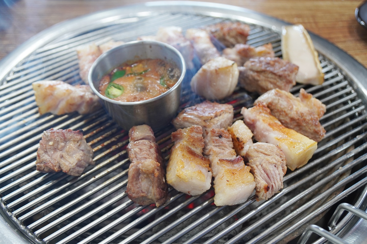 고냥이3마리[제주도에서 처음 먹어본 돼지갈비, 꿀맛~] ㅇ 저녁 7시쯤 ‘뽈살집’ 한림점 갔는데, 예약대기까지 마감되어 급하게 식사할 곳을 찾다가 방문했어요. 뽈살집 길건너에 바로 있습니다. ㅇ 메뉴 보고 흑돼지 먹으려고 했는데, 제주 현지인으로 보이는 나이 지긋한 어르신들 모두가 돼지갈비를 드시고 있어서 우리도 따라 돼지갈비 주문~ ㅇ 기본찬, 숯불 모두 훌륭했어요. 서빙해주시는 어머님들도 친절해서 기분 좋았습니다. ㅇ 돼지갈비 레알 부드럽고, 양념이 너무 달거나 짜지 않아서 좋았어요. 서비스로 껍데기 주시는데, 이게 진짜 별미예요. 맛있어서 추가로 주문해먹었네요. ㅇ 식사는 무조건 비냉. 이 집 비냉 잘해요. 딱 필요한 맛만 있고, 갈비 얹어서 함께 먹으면 꿀입니다. ‘뽈살집’ 마감 덕에 맛집 발견~!!