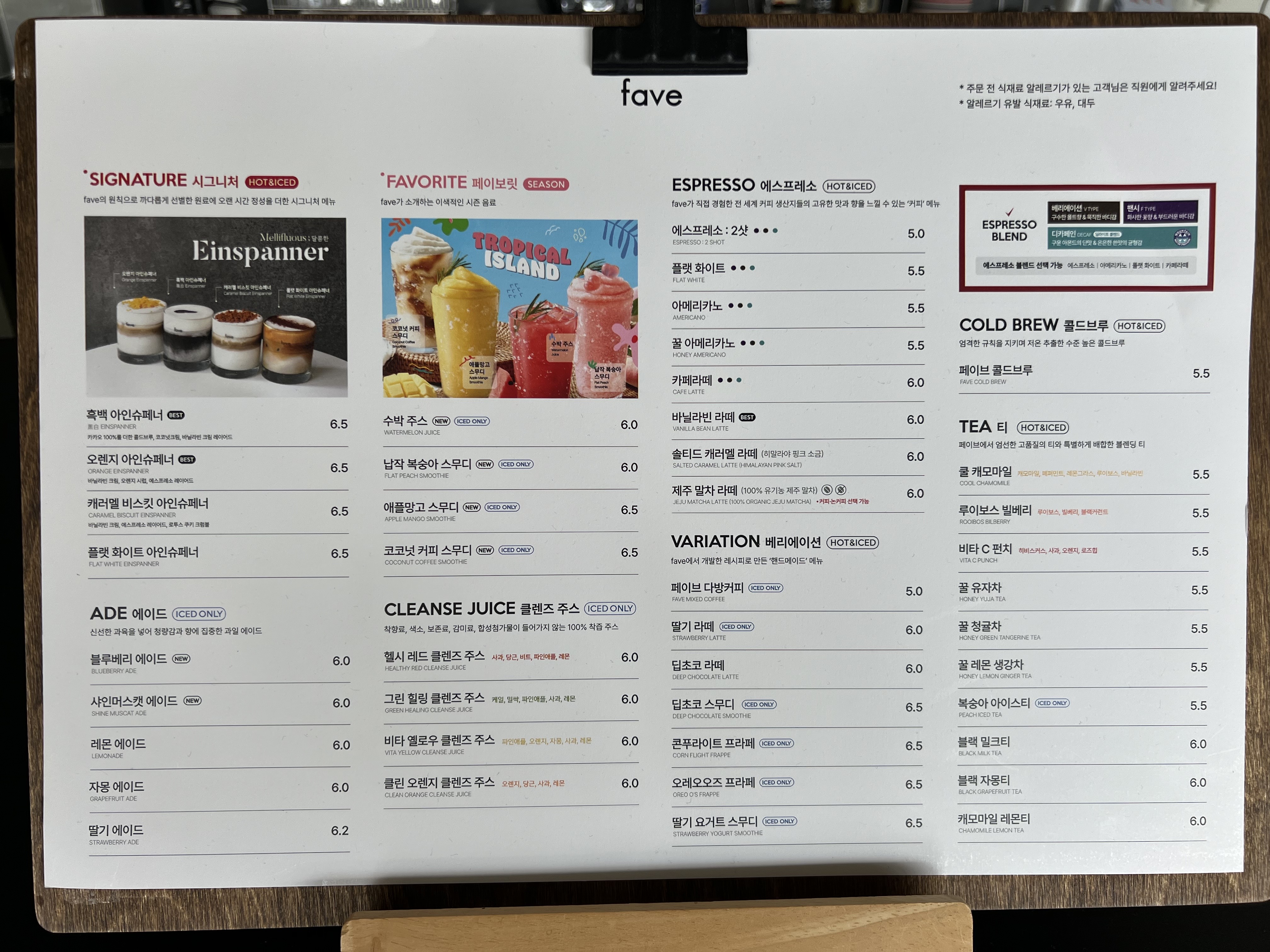 - 플랫 화이트 아인슈페너 6,500원
