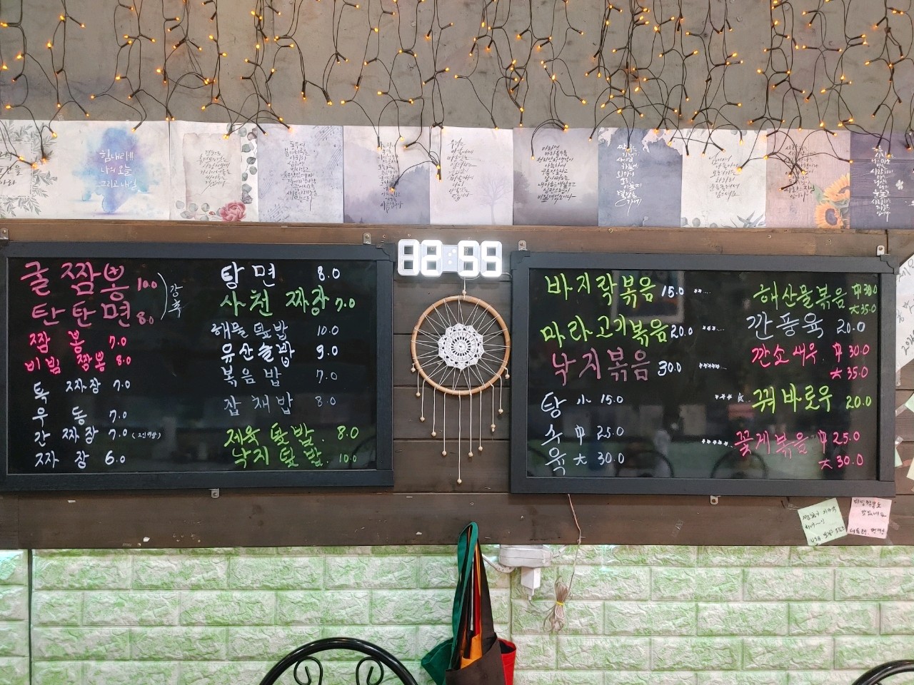 ag****비빔짬뽕 먹었는데 해산물이 다양하고 양이 푸짐해서 맛있게 먹었어요. 좋은 음악과 인상깊은 글귀와 함께 식사할 수 있는 공간입니다. 사장님 부부가 친절하시고 간식도 주시고 인심이 좋으셔요! 담에 또 방문할게요^^
