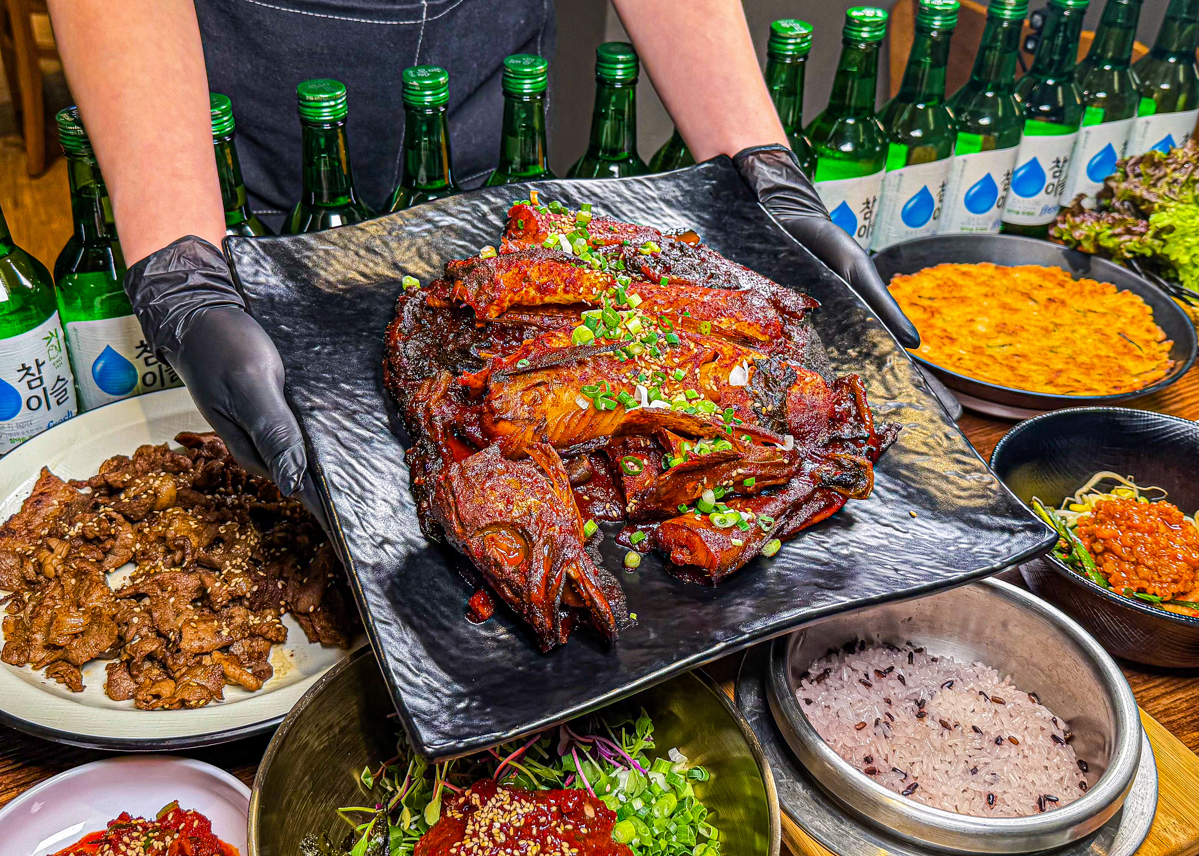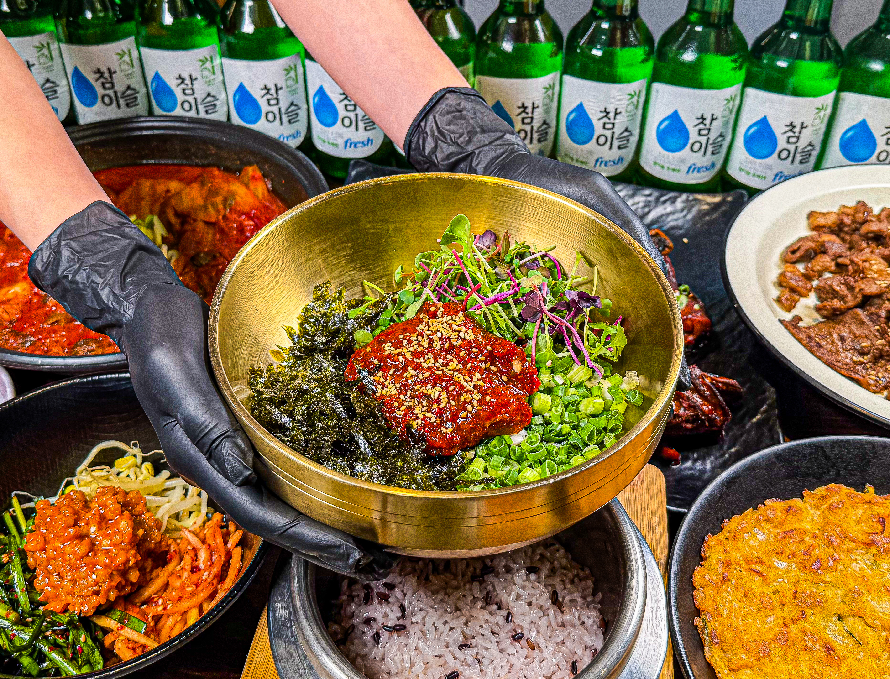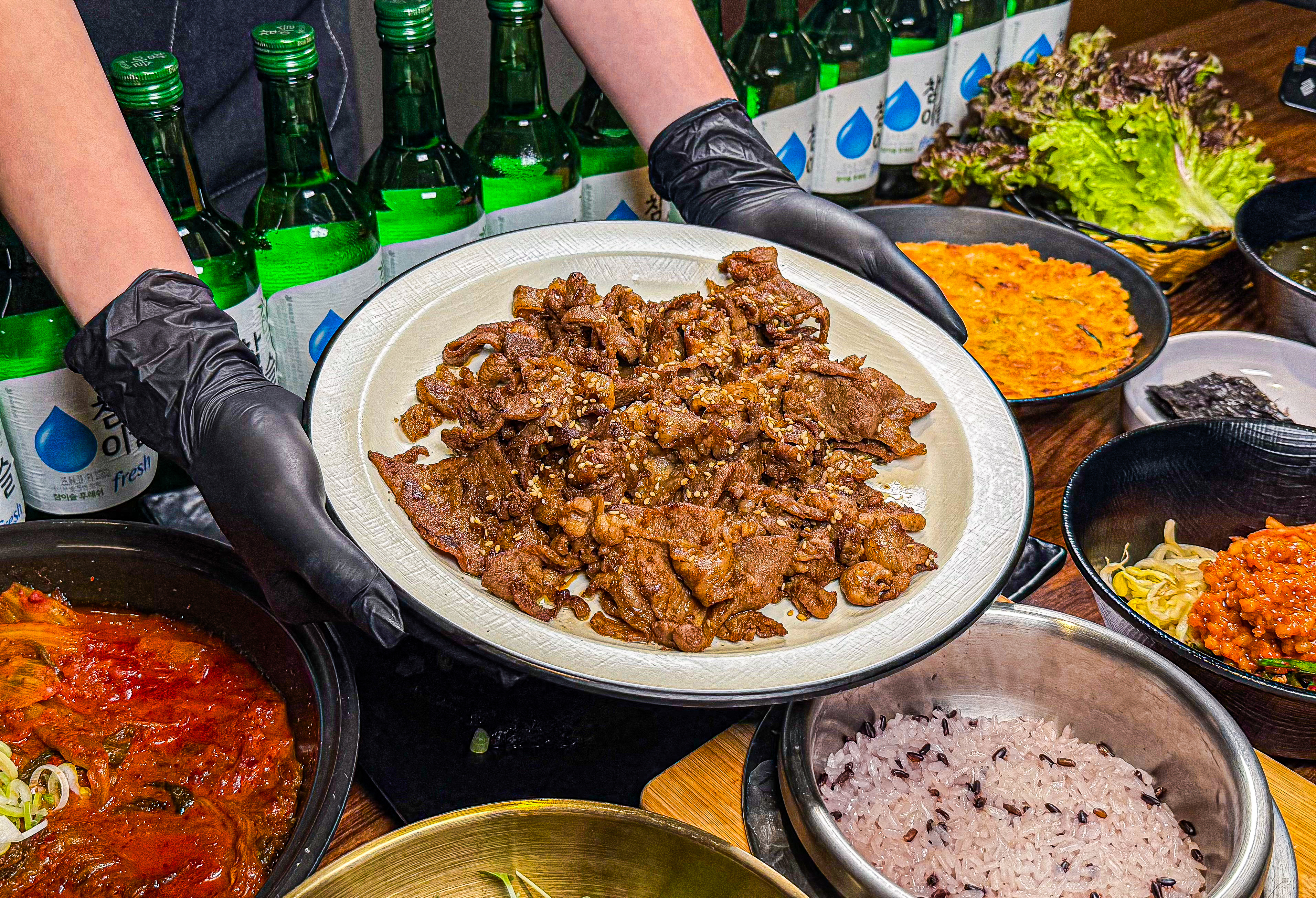 다빛의 플레이스솥밥 불백정식 14,000원, 솥밥 흑돼지김치찜 14,000원, 11시 조금 넘어 방문했더니 기다리지 않고 곧바로 입장할 수 있었습니다. 식사를 마치고 나올 때는 대기 줄이 생겼어요. 반찬이 입맛에 맞았고, 셀프바가 있어서 상추와 반찬을 추가로 가져다 먹을 수 있어서 좋았습니다. 다음에 기회가 되면 또 방문하고 싶군요.