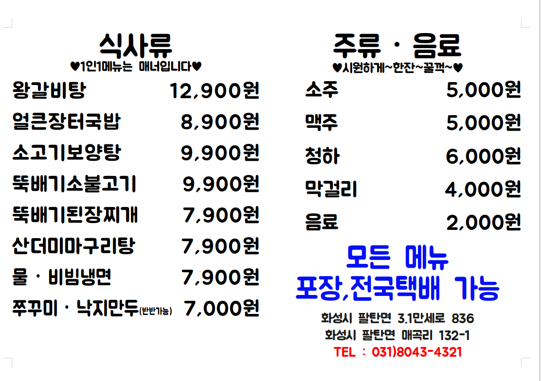 • 후식메뉴 물/비빔냉면 5,000원