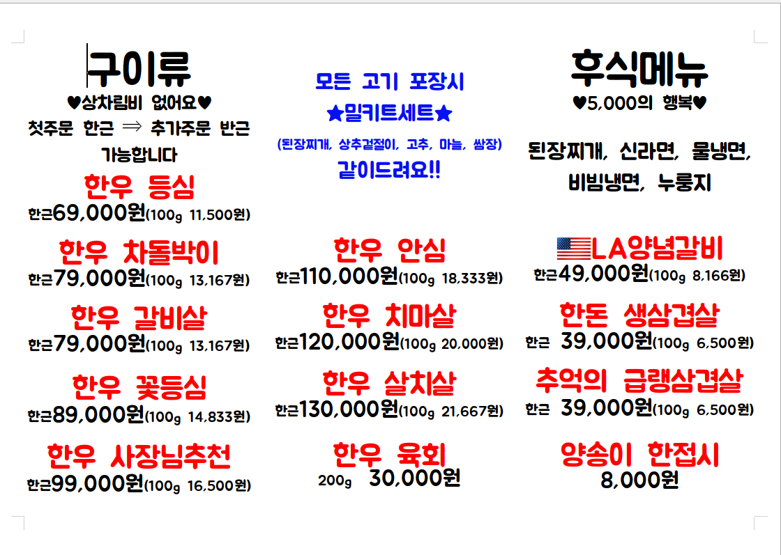 • 한우갈비살 1근(600g) 79,000원