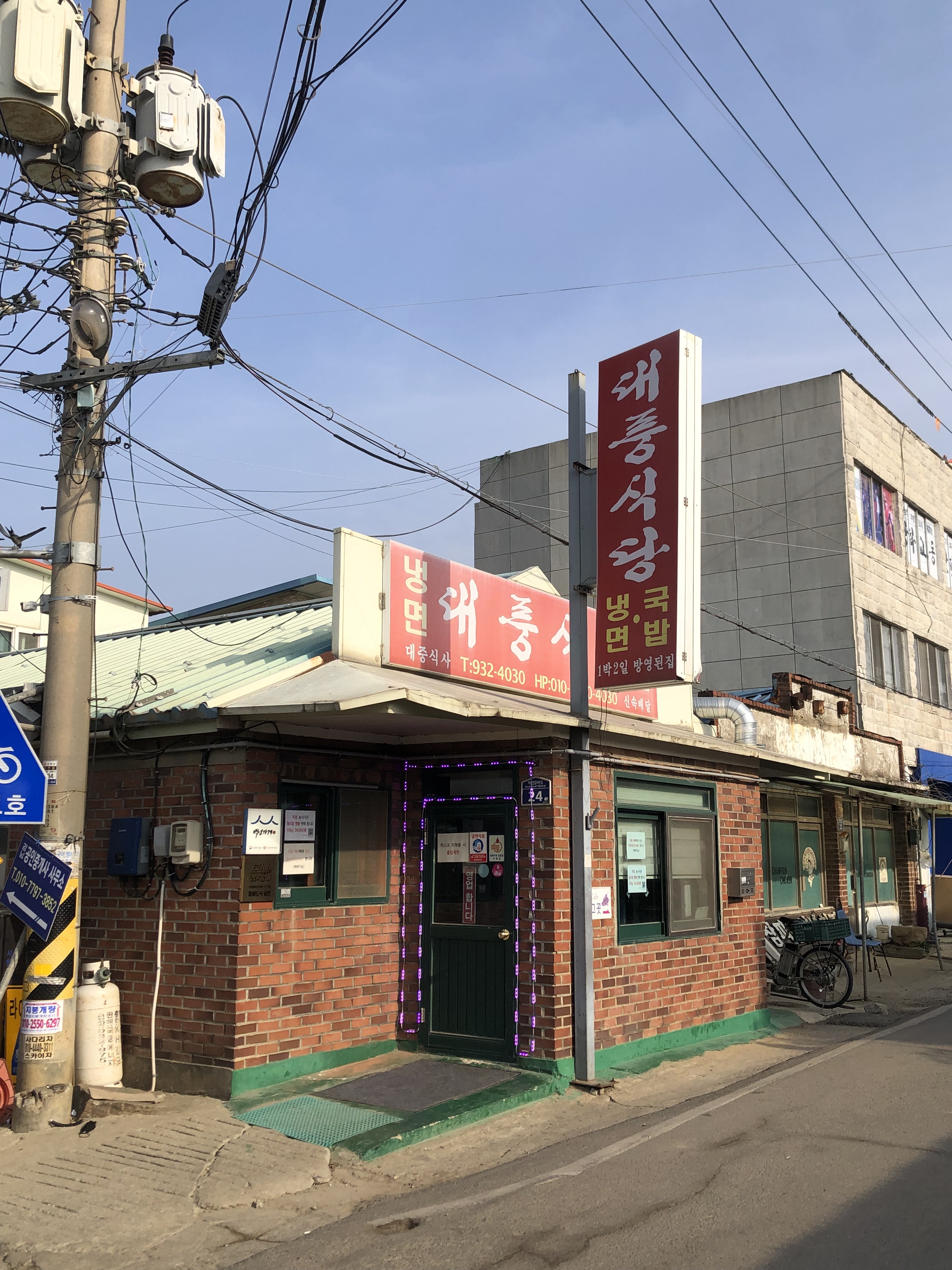 심춘강화 교동도 대풍식당 * 위치: 인천 강화군 교동도 대룡시장 초입 * 특징: 30년 이상 명맥을 유지해 온 중소벤처기업부 인증 '백년가게'입니다. * 소개: 1960년대부터 2대째 맛을 이어오고 있는 정겨운 노포입니다. 대표 메뉴는 슴슴하면서도 감칠맛이 일품인 황해도식 냉면과 든든한 고기국밥입니다. 대룡시장 특유의 레트로한 분위기를 구경한 뒤, 따뜻하고 정갈한 한 끼를 즐기기에 완벽한 곳이죠. 순무김치 세 번 더 시켜 먹었습니다. 킹왕짱!!!