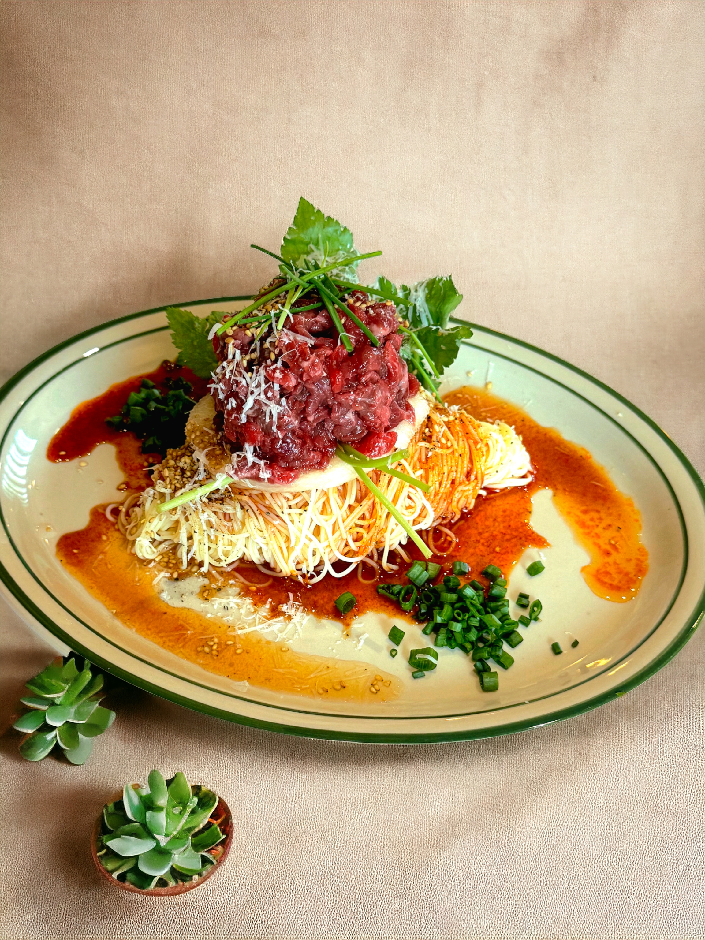 - 한우 육회 카펠리니 냉 파스타 18,000원