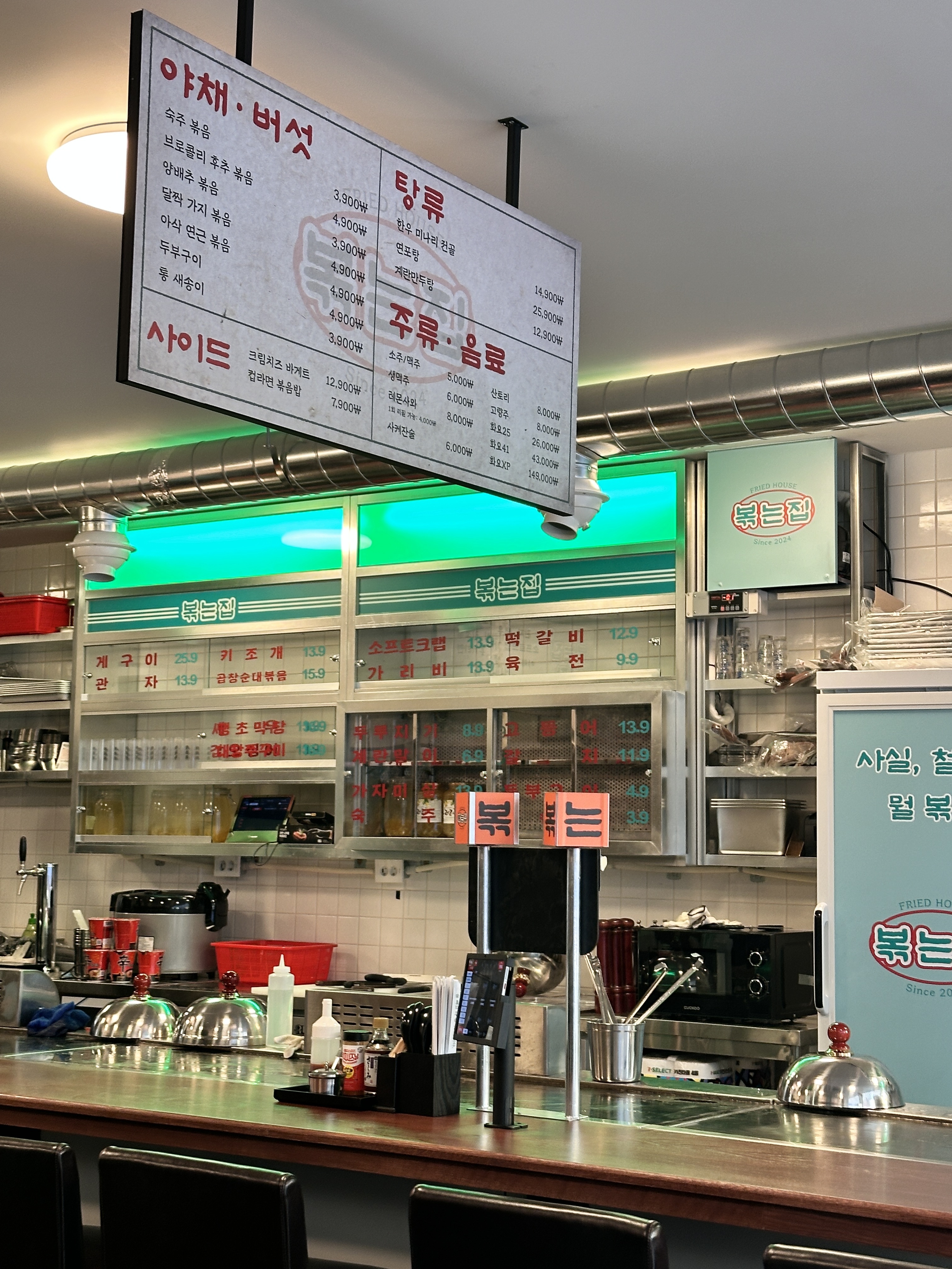 로얄네이비2025.11 광안리 분위기 활기찬 술집 < > 간빠진새에 이어 두 번째로 간 술집, 볶는집 볶는집은 웨이팅이 긴 술집이다. 일요일이라 6시 이전까진 웨이팅도 없었는데 2차로 간 거라서 저녁 되니 웨이팅이 늘어나서 생각보다 더 기다렸다. 가기 전에 음식 맛이 어떤지 리뷰들을 많이 봤었는데 음식 맛은 그냥 쏘쏘하다고~ 하지만 E 직원들이 엄청 기분 좋게 해 준다는~ 그 활기찬 기운 느끼러 여기 온 거였다. 그 기운 제대로 느끼려면 일단 자리는 바 테이블에 앉는 것이 좋다. 이름에서 알 수 있듯이 여긴 철판요리집 ㅎ 불 쇼 볼 수 있어서 가능하면 바 테이블이 좋지 음식은 기대가 없어서 그냥 두 개 정도 시켜볼까 했는데 웨이팅이 길어져서 앞전에 간 간빠진새에서 맥주랑 안주를 더 먹어버리는 바람에 배가 불러서 하나만 시켰다. 술은 레몬사와 한 잔씩이랑 레몬 생맥주가 있길래 맛보려고 하나 레몬사와는 주문하면 두 번째 잔은 1회에 한 해 반값에 먹을 수 있다. 근데 배가 불러서 못 먹었다. 나무젓가락 포장이 인증사진용이네- ㅎ 주문한 안주가 나왔다. 볶는집의 대표 메뉴인 꽃게구이 버터구이와 고추장 양념구이가 반반씩 나오는 양념반 후라이드반 꽃게구이 근데 왜 짝수가 아니고 홀수지? ㅎ 꽃게 철이어서 게가 부드러웠다. 난 양념보단 버터구이가 나았음 그리고 이건 서비스로 다 나오는 계란말이인데 얘가 더 맛있었다 ㅋ 있는 동안 직원이 와서 말도 건네고 이렇게 케첩으로 그림도 그려준다. 여기 직원은 그림도 잘 그려야 해 ㅋㅋㅋ 생일, 기념일 신나게 보내고 싶다면 꼭 말하기! 볶는집 {영업시간} 월~목요일 18:00pm ~ 02:40am 금~일요일 17:00pm ~ 03:30am