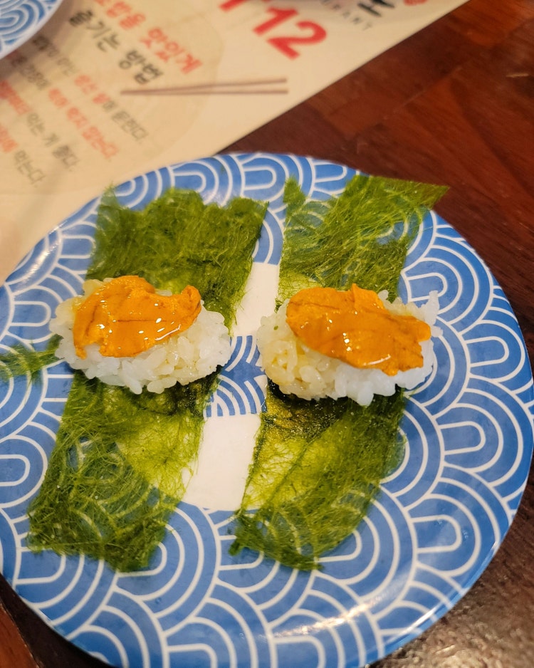 봄여름가을겨울맛집멋집범계역 근처에 위치한 회전초밥집이에요. 전부터 궁금해서 가보고 싶었던 곳이에요. 한접시 2,200원 동일가격이에요. 광어가 제일 맛있었고 참치, 연어, 고등어는 쏘쏘합니다. 지느러미 종류들은 당연히 기름지니까 꿀맛이었고, 육회는 너무 짜서 아쉬웠고, 감태우니가 독특하고 괜찮았어요. 타코와사비는 당연히 맛없없입니다. 미니 냉모밀 따로 주문했고 첨엔 면이 좀 딱딱했는데 시간이 좀 지나니 풀어져서 쫄깃거리고 먹을만해졌어요. 초밥 좋아하지만 대식가는 아닌(?) 2인이 먹은 가격은 약 7만원이었습니다.