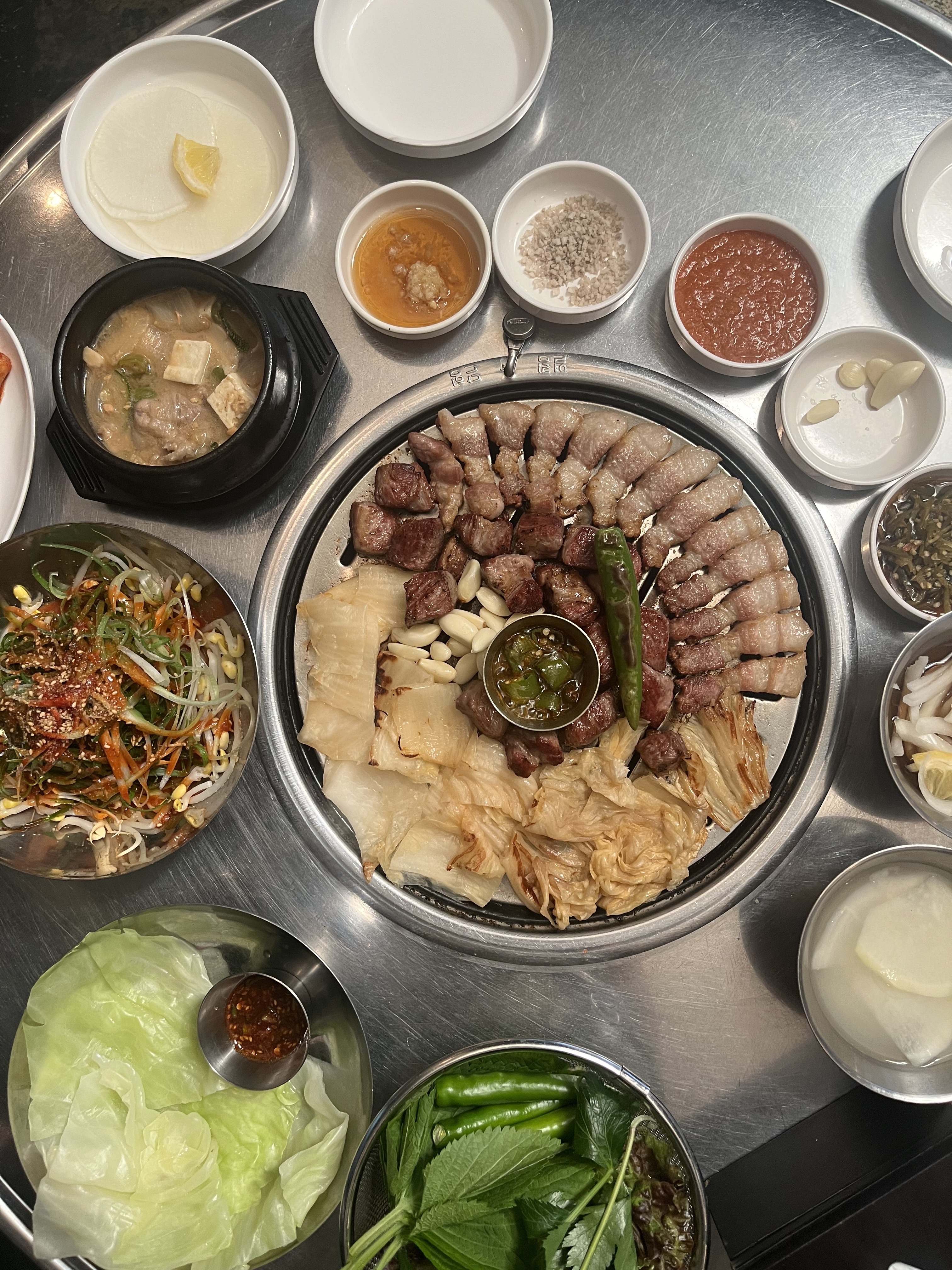 everydayon부산댁 서면점 갈때마다 너~무 만족이요😍 직원분들 완전 친절하고 밑반찬 알차고 깔끔하고 맛있고, 음료 마실때 얼음잔에 레몬띄어주는 서비스까지 쵝오에요👍🏻 모둠한판 소 550그람에 고기양 많아서 가성비도 좋고 고소하고 넘 맛나요. 특히 삼겹살 비계 쫄깃함이 굿😆 구워주기때문에 먹기도 완전 편하구요. 청도 한재 미나리랑 같이 먹으니 향긋하니 더 맛있어😊 식후 된장라면 주문했는데 구수하니 밥까지 말아 제대로 마무리했어요😆 서면맛집, 전포동고기집은 부산댁😍