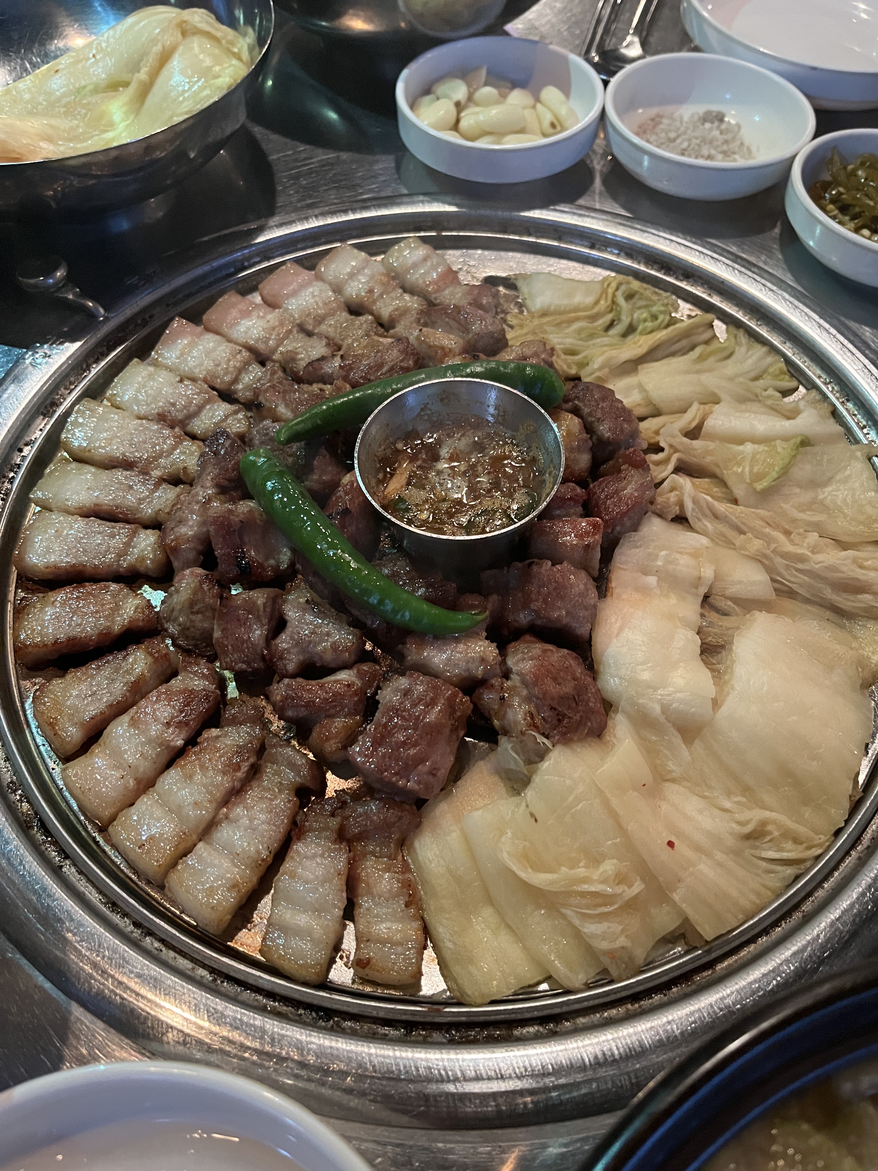 Ainroro38고기가 두툼하고 맛있어요. 다 구워 주셔서 따로 힘들게 구울 필요가 없고, 특히 멜젓에 찍어 먹으니 정말 환상적 적이에요.묵은지를 구워 먹어서 올려 먹으니 정말 색다른 조합이었어요. 밀면 같은 사이드류도 잘 하시는 거 같아요. 다음에 또 방문 할게요!