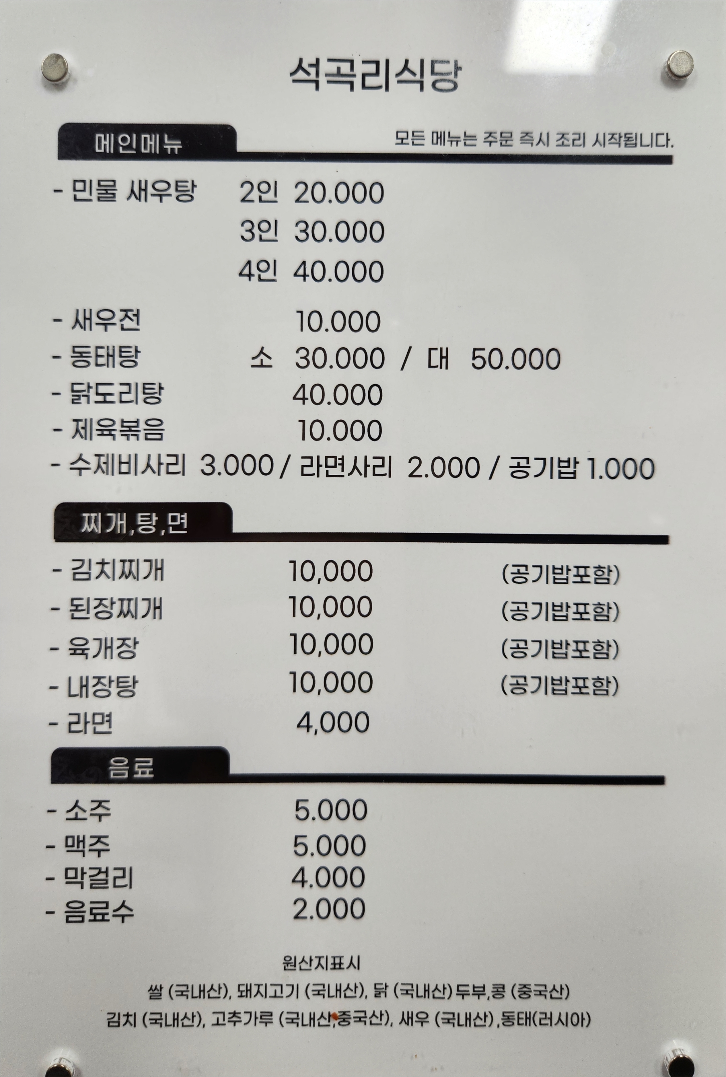 • 민물새우탕 20,000원