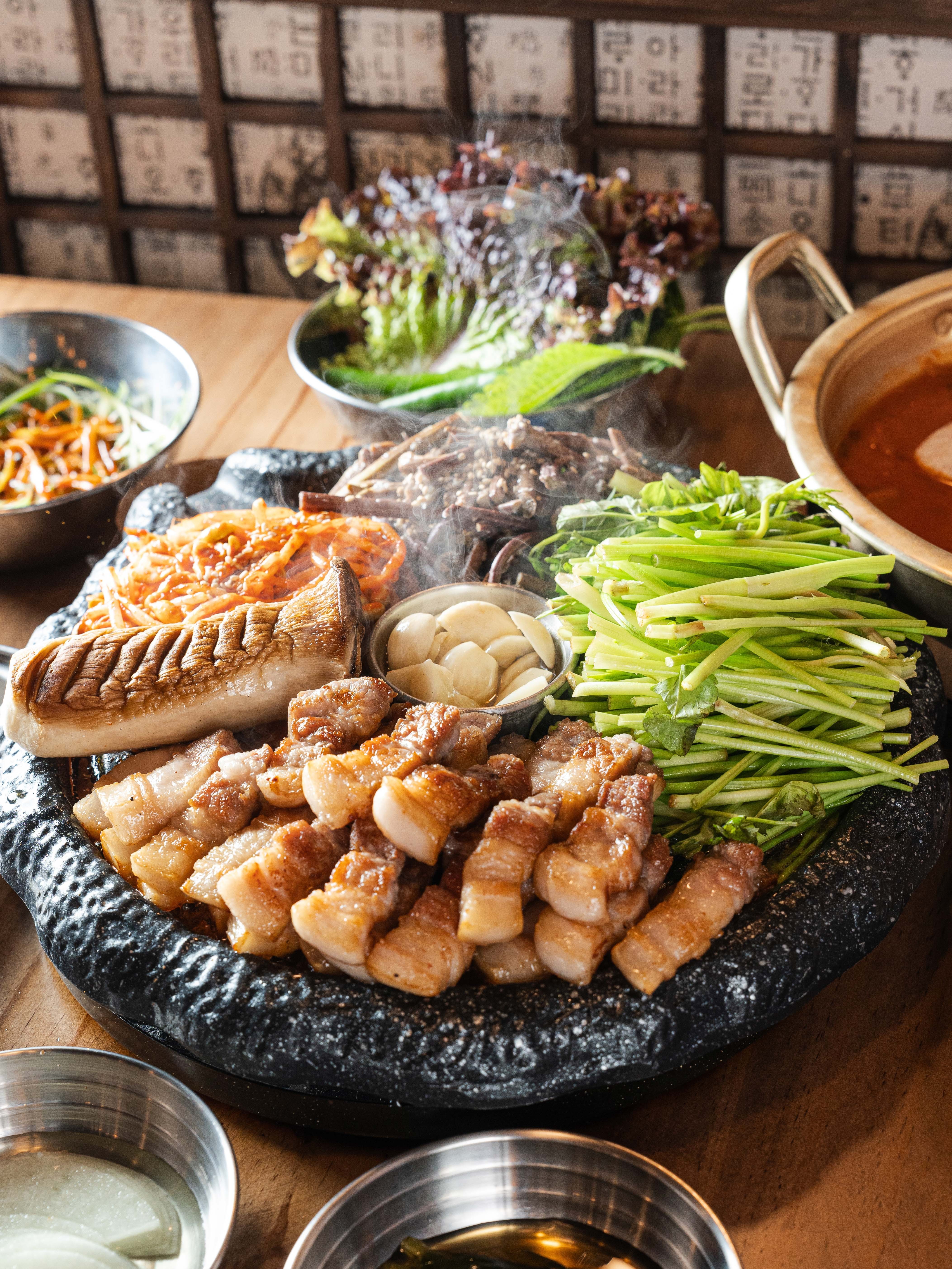 공삼공하나구워주셔서 편하게 먹었어요! 10분 정도 걸린 것 같아요. 야채도 많고 반찬 추가는 셀프바 이용했어요~ 알배추쌈 싸먹을 수 있어서 좋았어요!