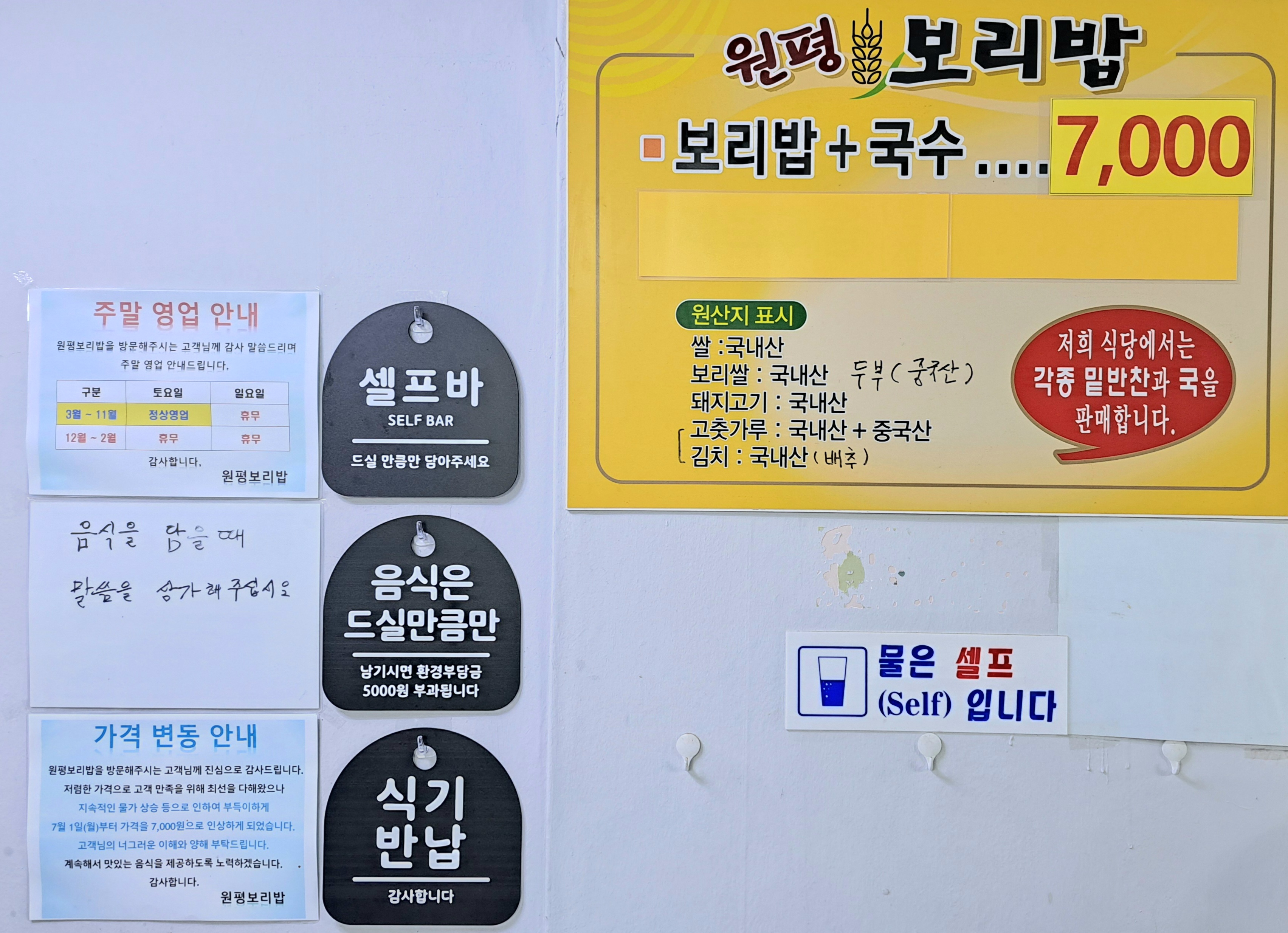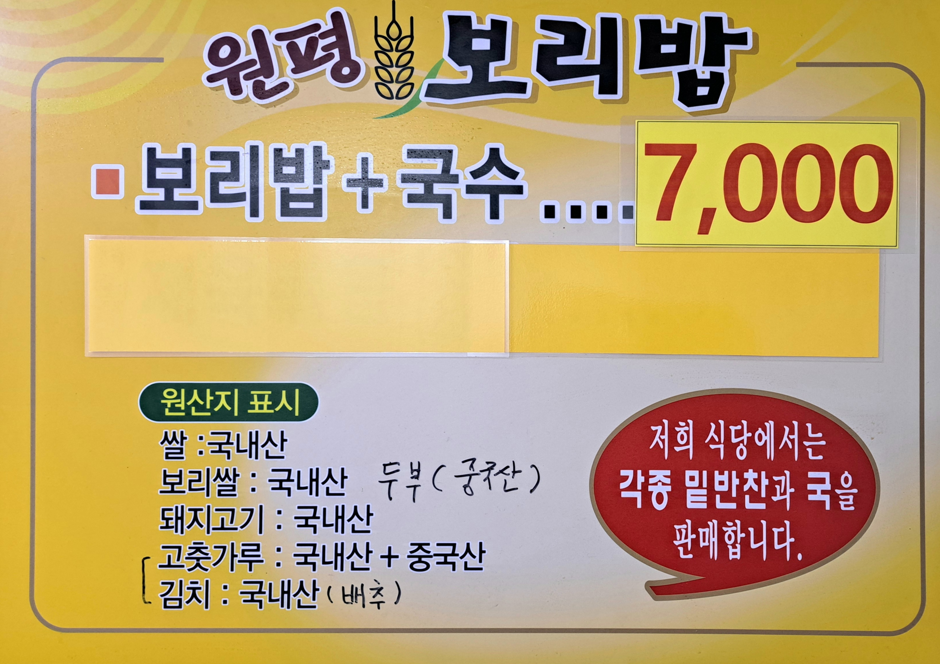 - 보리밥+국수(뷔페식-마음껏 드세요) 7,000원