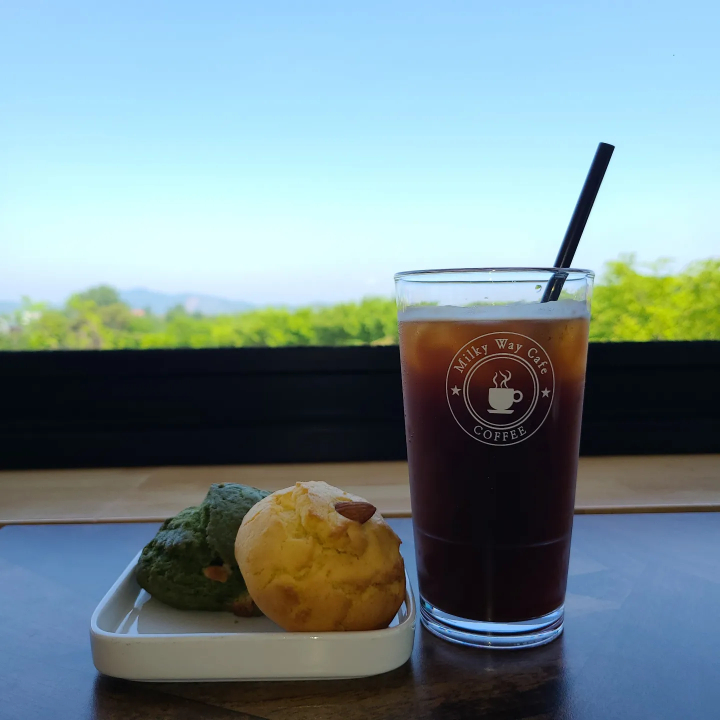mar****한탄강 물윗길 트래킹 길따라 카페은하수에서 잠시 쉬어갑니다! 이른 시간이라 그런지 붐빔없이 2층에 전세내며 힐링중이에요ㅎ 키스링 마늘빵과 고구마라떼 구입요! 단맛 안좋아하는 저는 극강의 단맛인데 칭구는 극강의 천국을 맛보았다고 좋아해요ㅋ 빵은 먹을 생각이 없었는데 직접 만들어 판매해서 굳이굳이 사먹었네요 일명 교황빵이라 불리는 빵의 다른 버젼입니다.,한적하니 노트북 작업하고 싶은만큼 조용하고 좋습니다! 직원분들도 인사로 맞아 주시고 덕분에 기분좋게 편히 쉬었다갑니다 😊