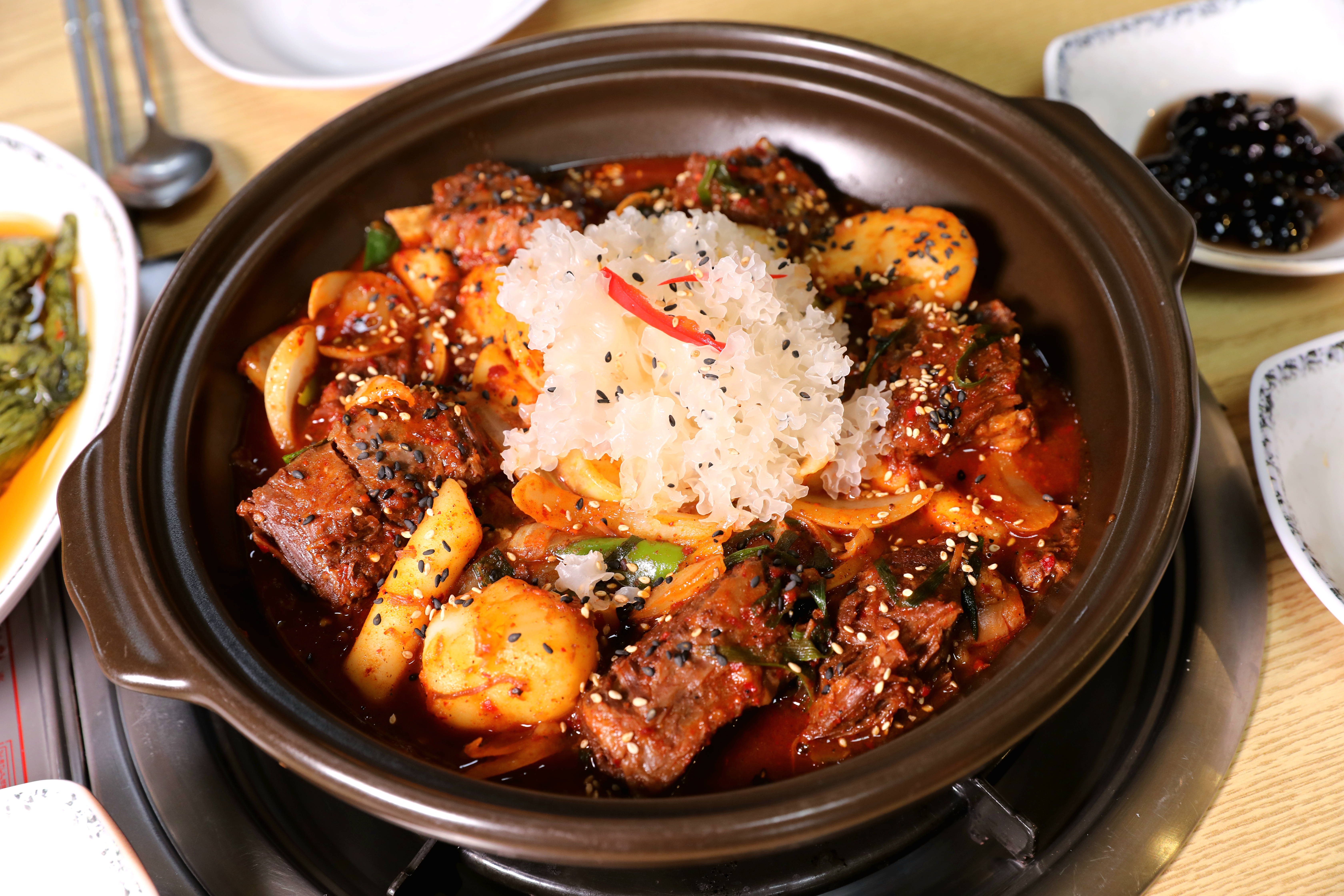 우가네맛찜 갈비탕 커다란 뚝배기에 뽀글뽀글 끓여 나오는 모습부터 식욕을 자극했습니다. 먼저 갈비탕은 맑고 진한 국물이 일품이었습니다. 한입 맛보자마자 사골의 깊은 맛이 입안 가득 퍼지고, 고소하면서도 깔끔한 감칠맛좋습니다