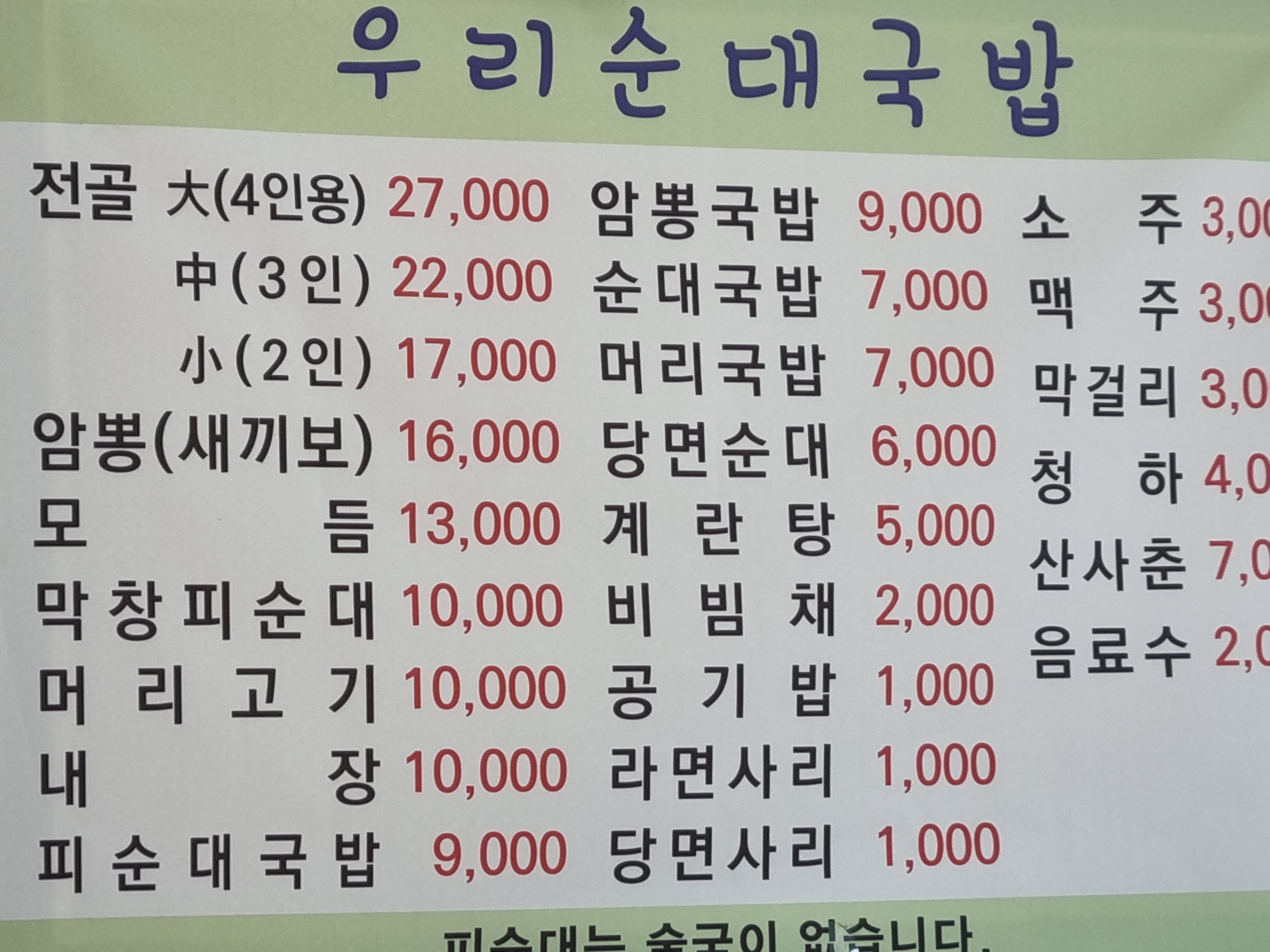 - 순대국밥 9,000원