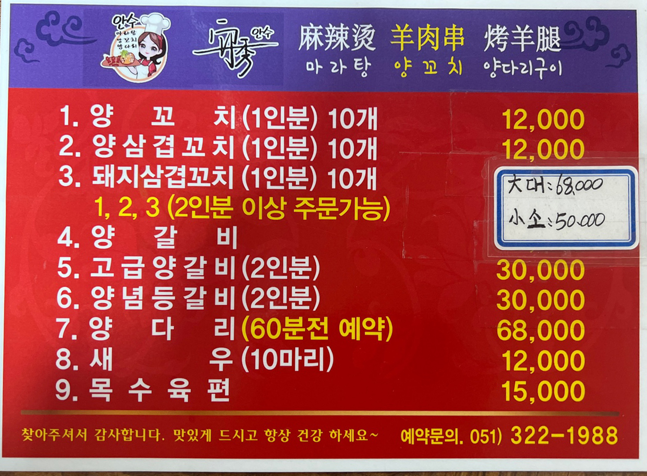 - 양갈비 50000~68000