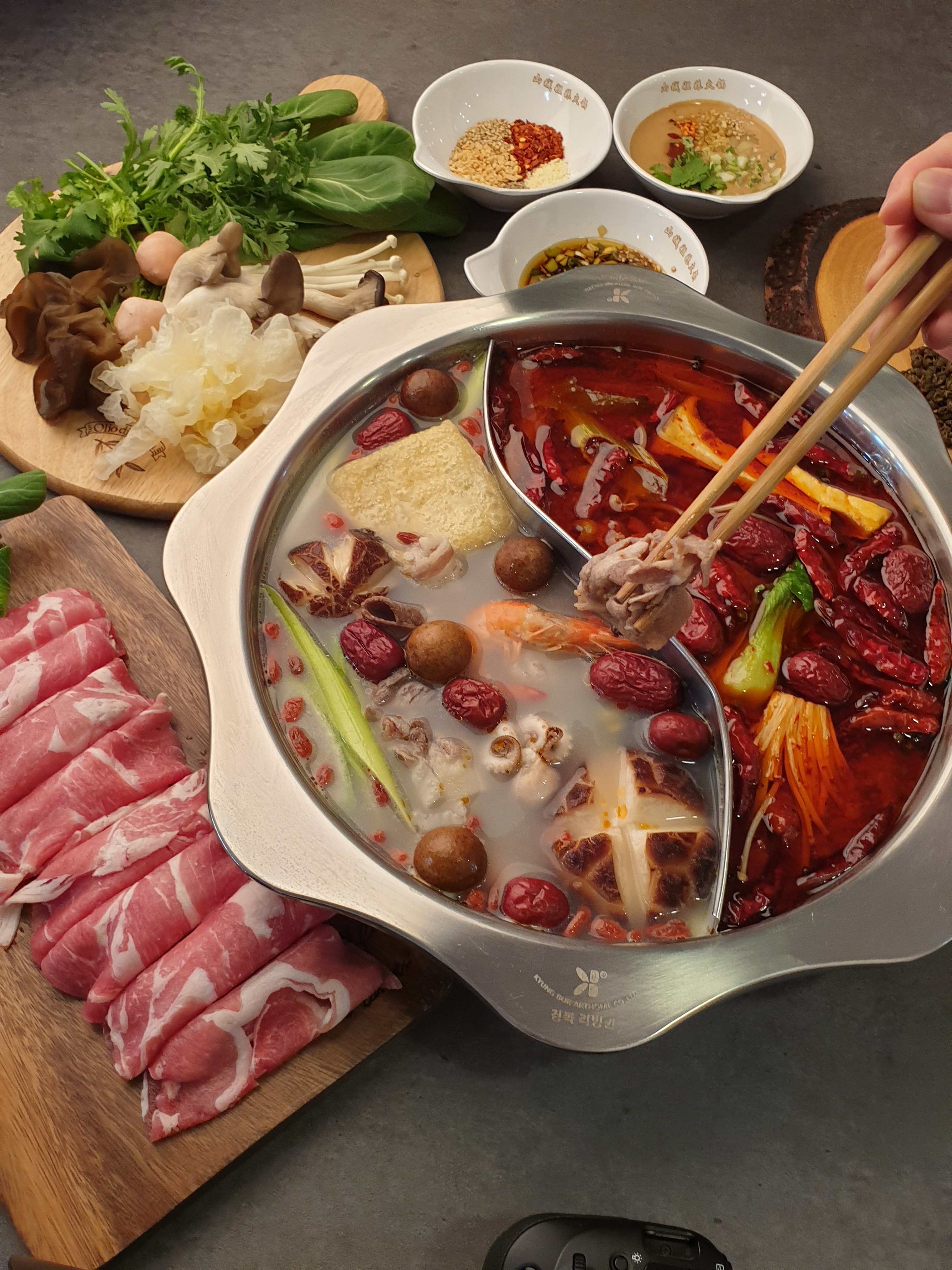 함정 빠지다처음 먹어보는 훠궤.. 중국여행 온 기분.. 🇨🇳 무한리필이고 종류도 다양하고 조금씩 담겨있어서 떨어지면 바로바로 리필해주시니 더 신선해요. 소고기, 돼지고기, 양고기도 상태 좋고 맘컷 먹을 수 있어요 마라탕이랑은 좀 다르네요. 소스가 맛있어요