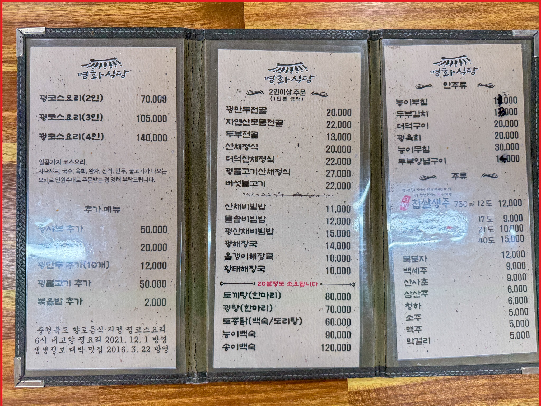 - 산채정식 20,000원