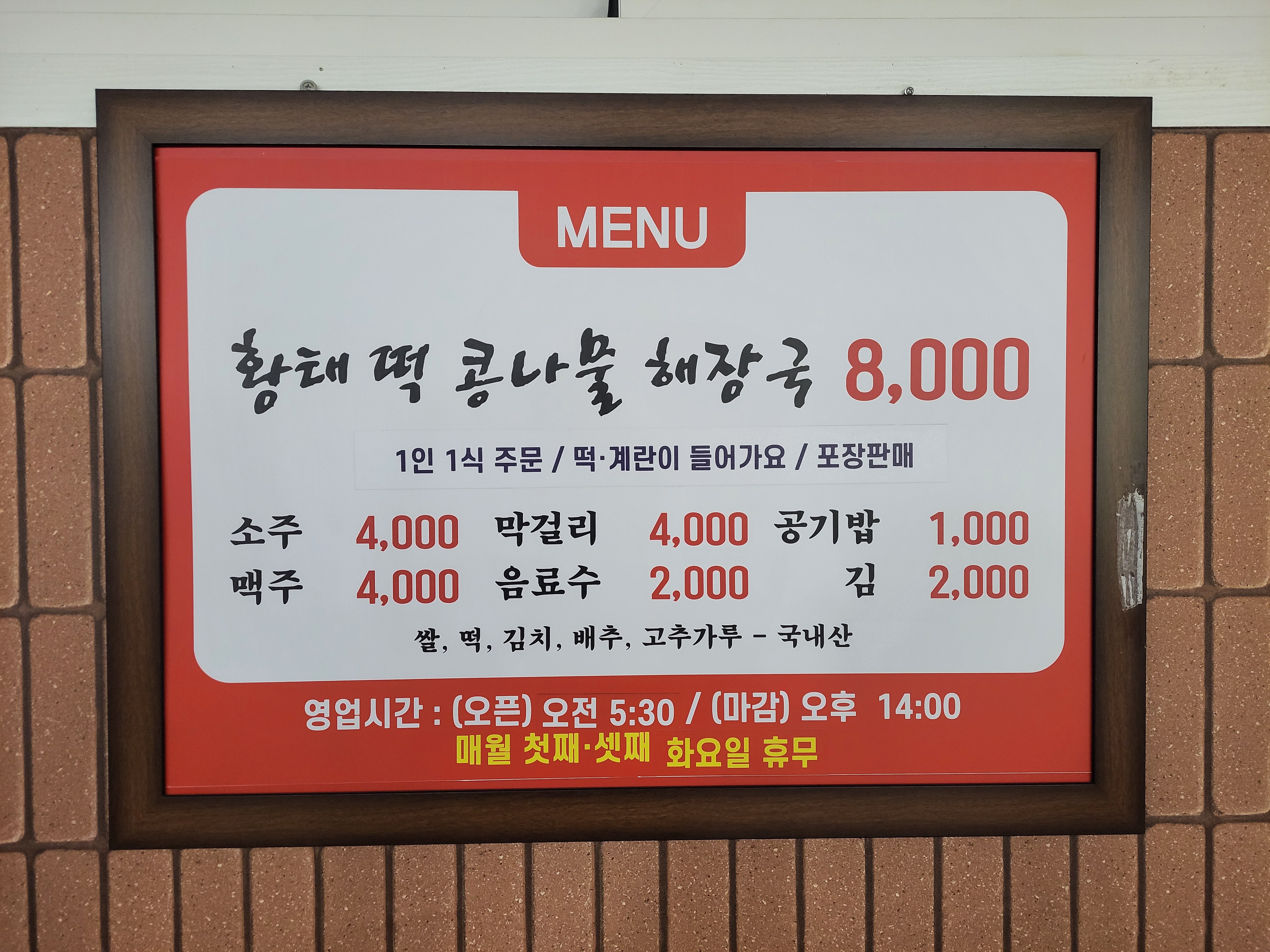 - 황태떡콩나물해장국 8,000원