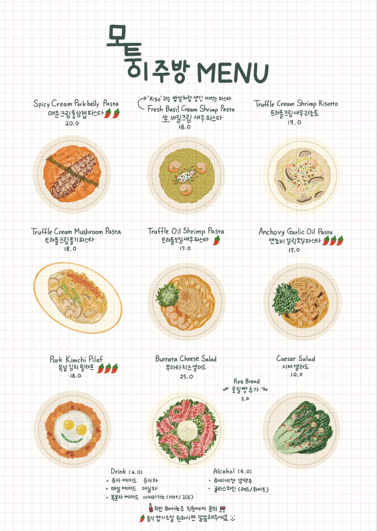 - 매운크림 통삼겹파스타 20,000원