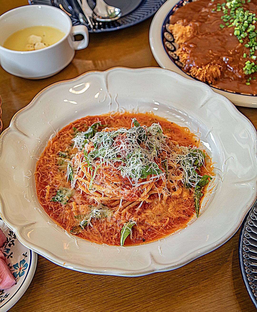 SSGY1시쯤에 급하게 전화해서 예약해서 왔어요! 사장님이 친절하게 전화 받아주셨고 미리 음식 주문해서 오자마자 먹을 수 있었습니다. 벽 인테리어가 고급지고 근처에 카페도 많아서 데이트 코스 양식당으로 딱입니다😆 4명이 와서 5개 시키긴 했지만 접시마다 음식 양이 많아요! 👍 👍 크림파스타 맛이 묵직해서 김치가 생각나는..!ㅎㅎㅎ