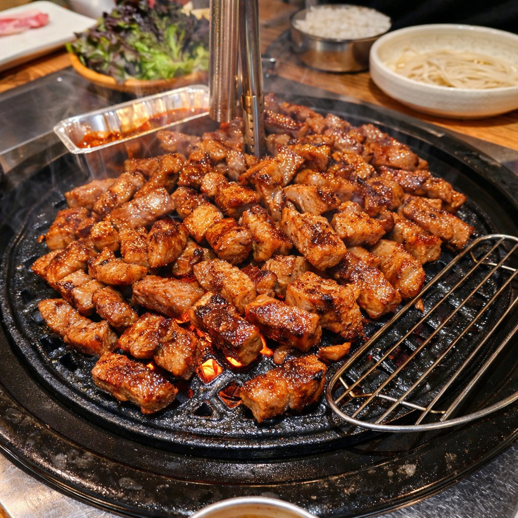 맛투어리스🥩 갈비가 입에서 사르르 녹아요 청양고추 간장 소스에 찍어 먹으면 감칠맛이 확 오르고 묵은지랑 마늘도 구워 먹을 수 있게 세팅해줘서 디테일 살아있는 집이에요 🚗 주차 넓고 공간도 커서 가족 외식, 회식 추천!👍