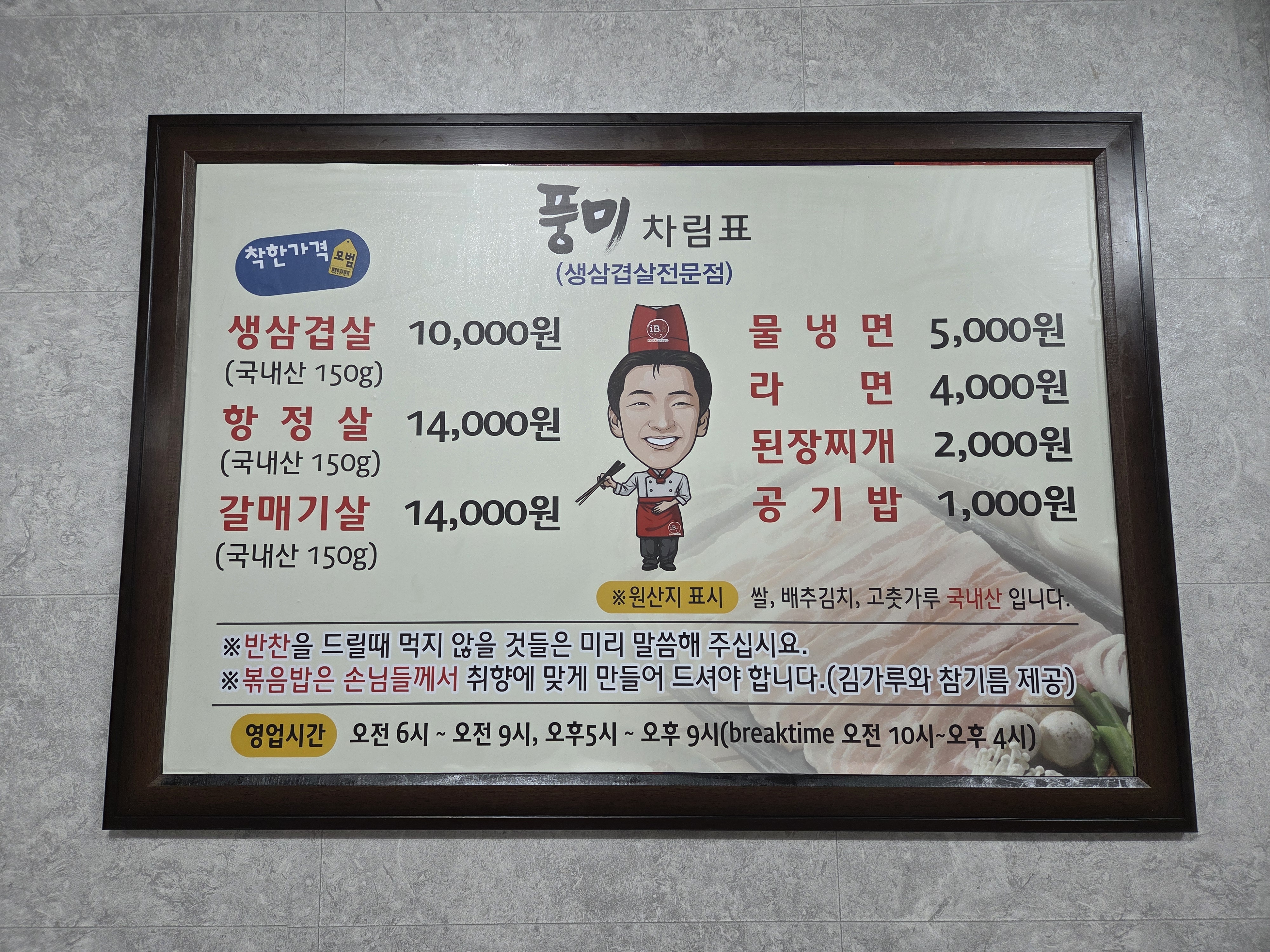 - 생삼겹살 10,000원