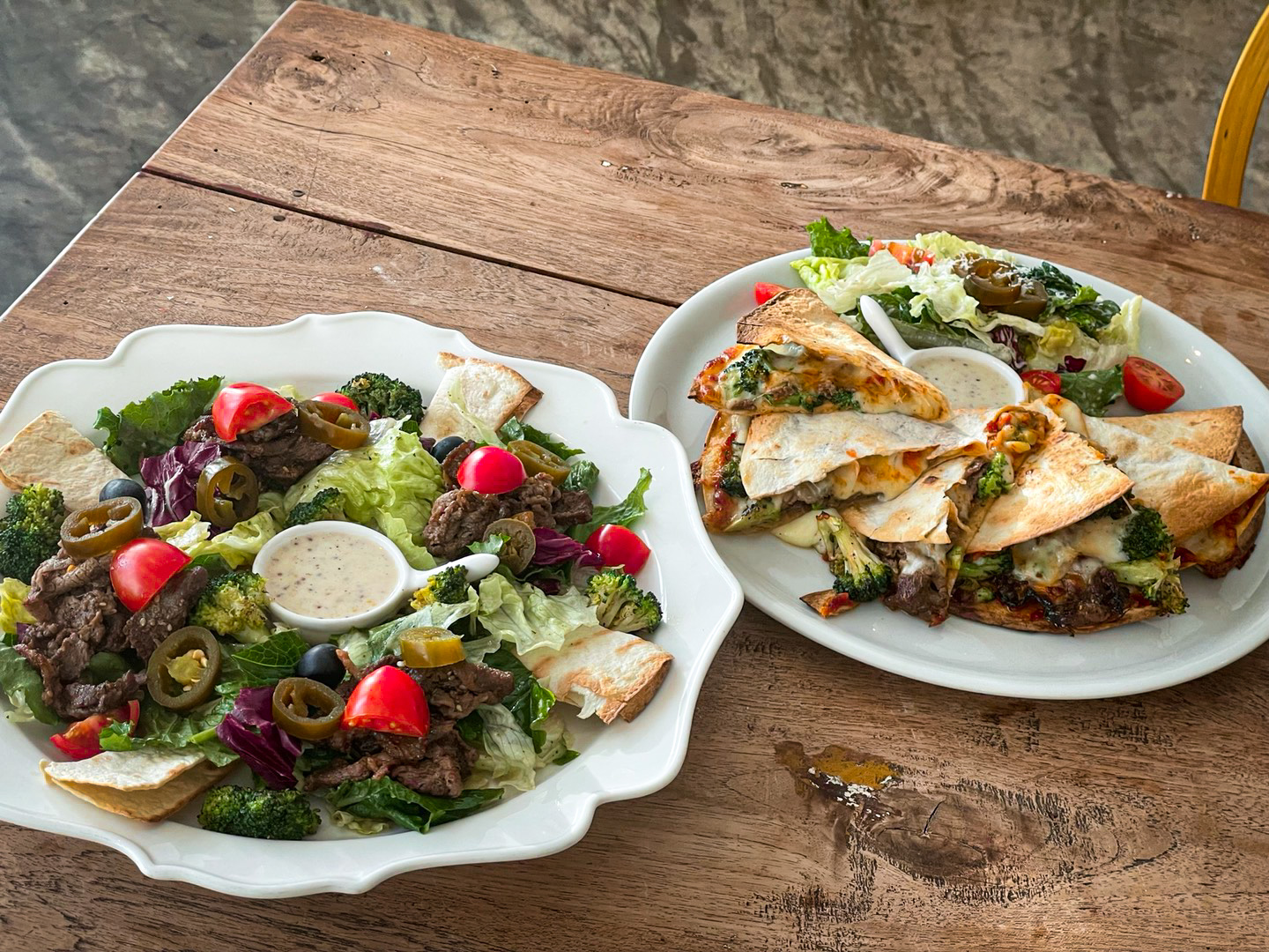 더기와여니블로그MomentLog남자친구와 늦은 브런치를 먹으러 명지 브런치 맛집<테라비>방문! 건물 지하 주차라 편했고, 카페가 햇살맞집! 엔틱한 분위기에 우드 인테리어로 아늑한 느낌! 바질크림파스타와 퀘사디아 주문! 브런치 메뉴가 생각보다 빨리나와서 배고팠는데 아주 굿! 생바질을 갈아 만든 바질크림소스가 들어간 파스타가 비주얼도 이쁘고 새우도 오동통! 무엇보다 소스가 진짜 맛있어요! 저는 크림/ 바질 둘다 좋아하는데, 저 같은 취향이신분은 무조건 드셔보세요! 완전 맛도리! 퀘사디아에 불고기도 낭낭하게 들어 있고, 모짜렐라 치즈가 아주 듬뿍~ 들어있어서 수제 토마토 소스와 야채들과 함께 먹으니 브런치 찐 맛집 인정! 대부분 수제로 만드니, 대충하는 브런치집 아님! 음식 퀄리티가 좋아서 또 오고 싶은 곳! 사이드로 나온 샐러드도 꿀맛!😍