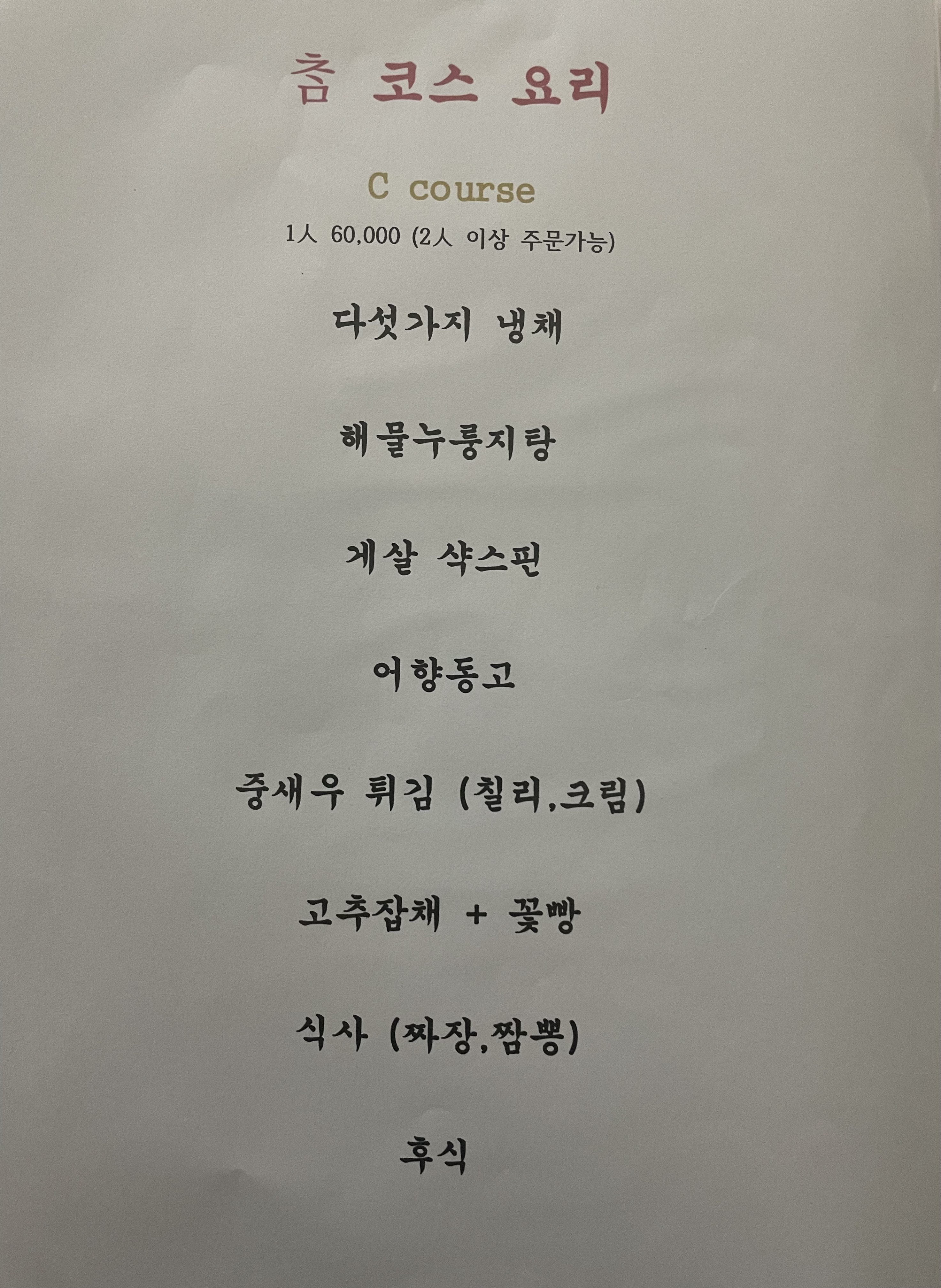 - 참특선냉채 60,000원
