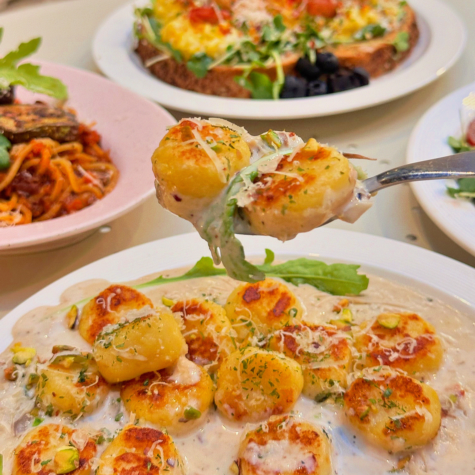 싸리맘54바질크림감자뇨끼 소스가 너무 맛있어요. 리조또는 너무 느끼하지 않아서 좋았습니다. 샌드위치 별로 좋아하지 않는데 쉬림프 오픈 샌드위치 너무 맛있게 잘 먹었어요! 술은 안마셨지만 종류가 다양해서 기회가 된다면 마셔보고 싶네요~^^ 매장 인테리어가 깔끔하면서도 아기자기하게 꾸며져있고 자연광이 들어와서 더 분위기가 좋은것 같아요~ 다음에 다른 메뉴 먹으러 갈게요!
