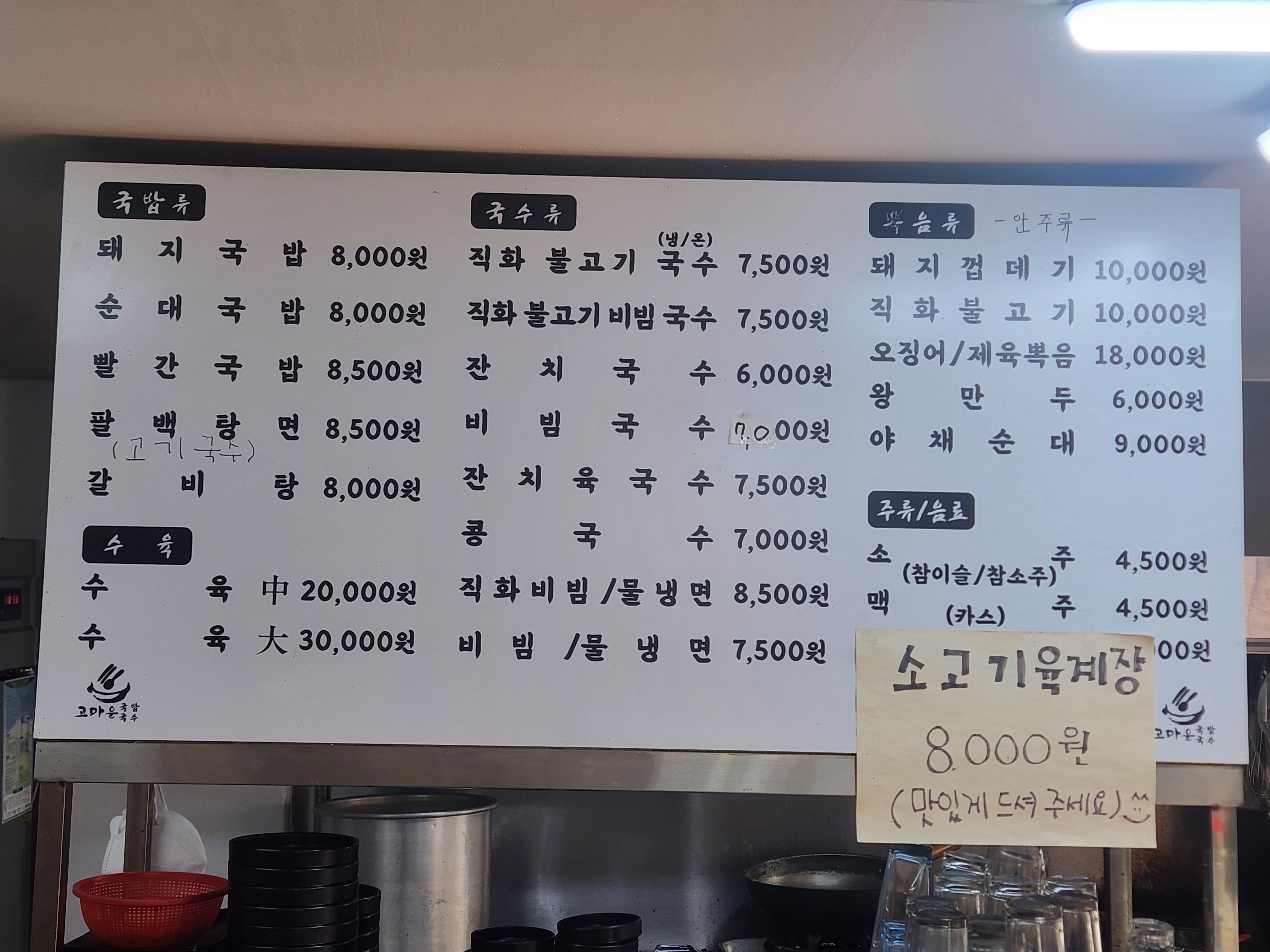 - 팔백탕면(고기국수) 8,500원