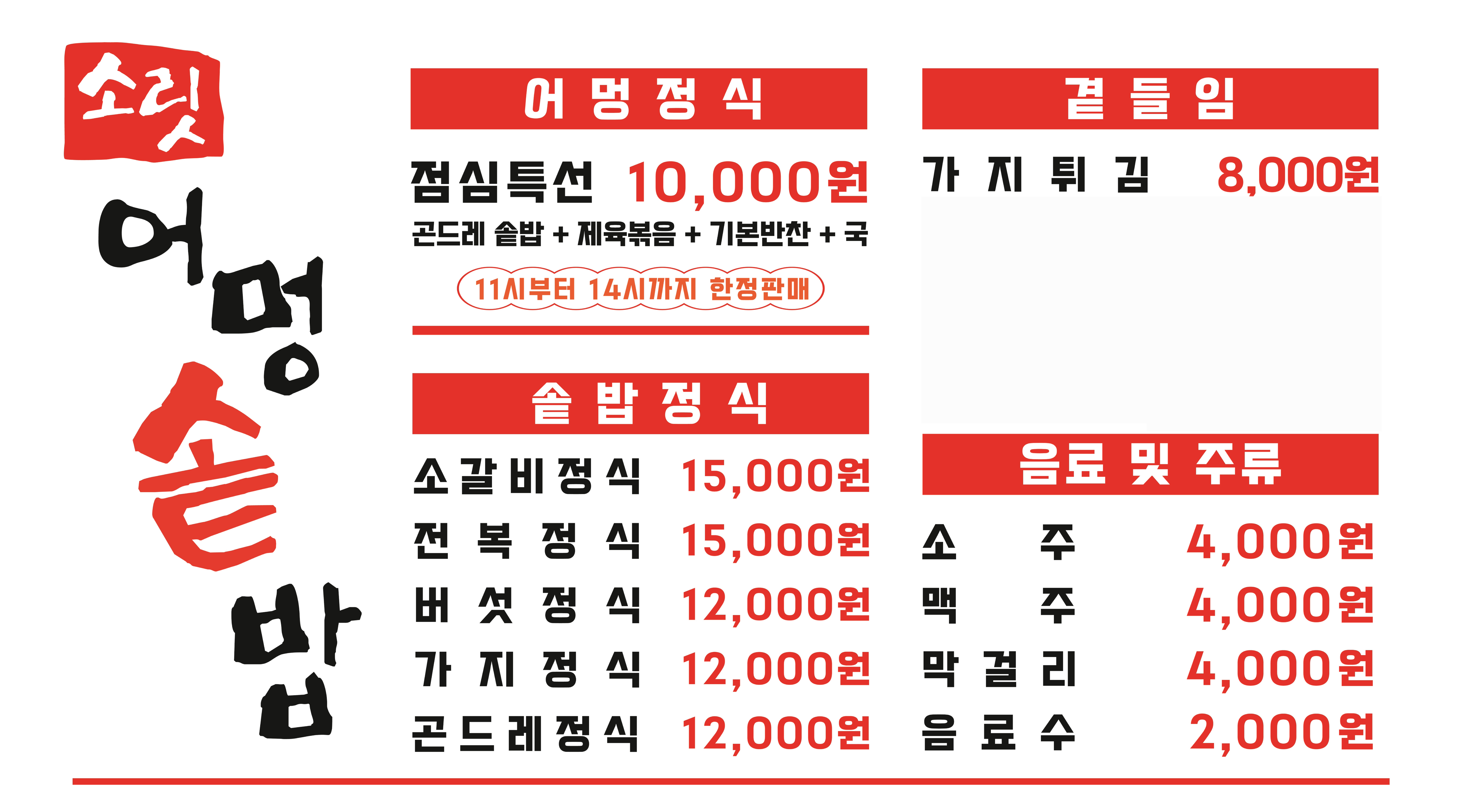 - 점심특선 10,000원