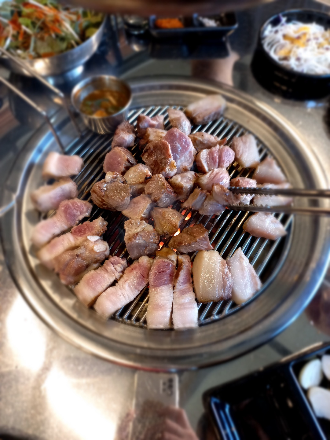 키즈쿡13제주금호리조트 근처 고기집 검색해 서 방문해습니다. 연탄불에 신선한 목살, 삼겹살 맛나게 먹었어요. 친절히 설명해주시면서 구워주시니 더 맛나게 먹었어요. 술병에 빳빳한 천원 한장씩 있어 용돈 받는기분이라 좋은 추억도 덤으로 얻어가네요. 리조트에서 도보 5분정도라 이동하기도 편하고 오게도면 또 가보고 싶어요 ^^