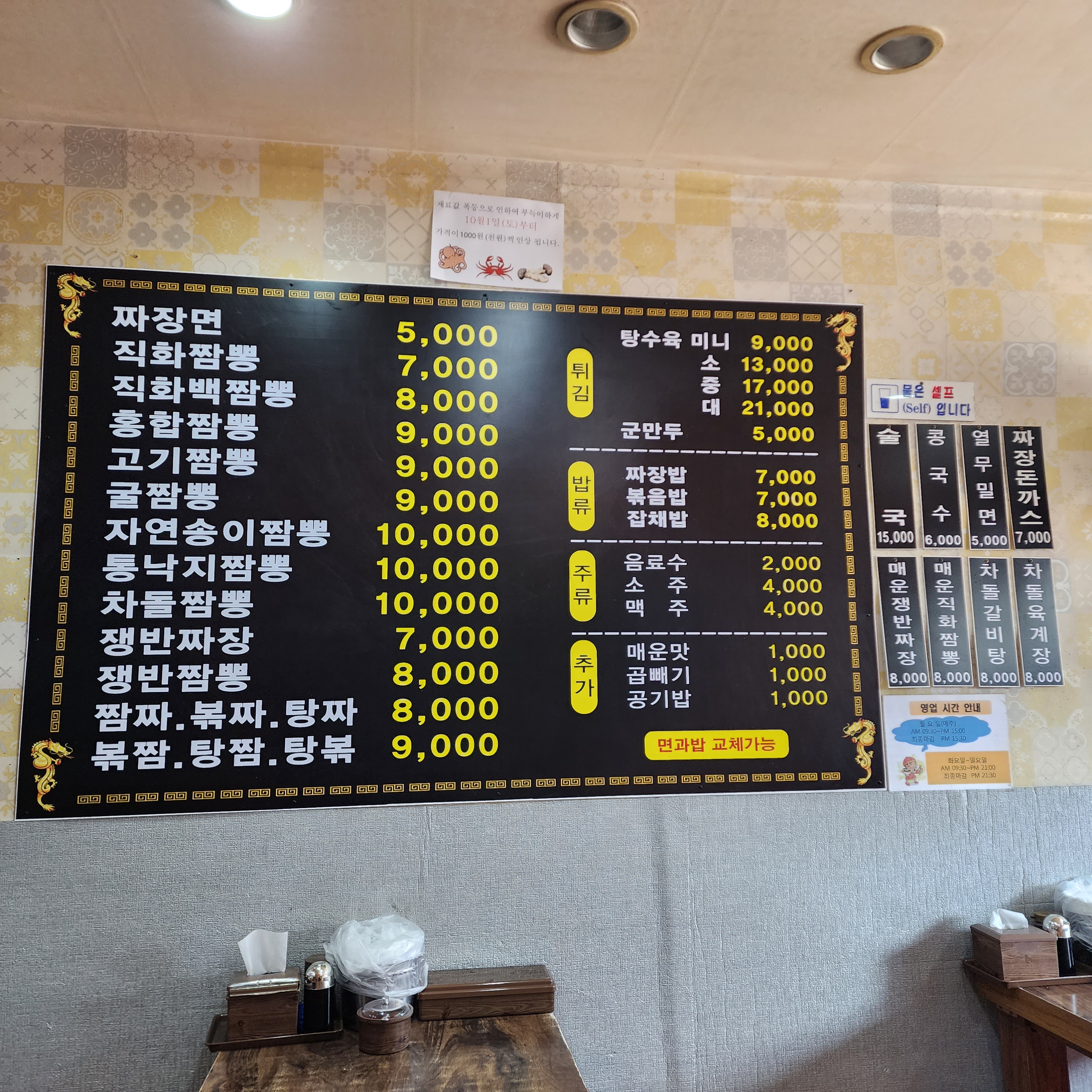 - 매운직화짬뽕 9,000원