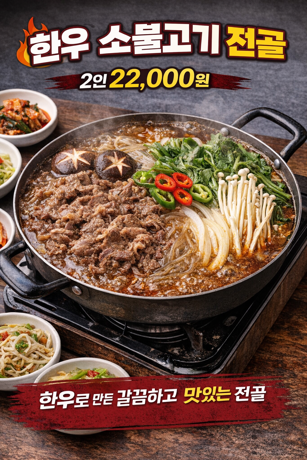 - 한우 소불고기 전골 2인 22,000원