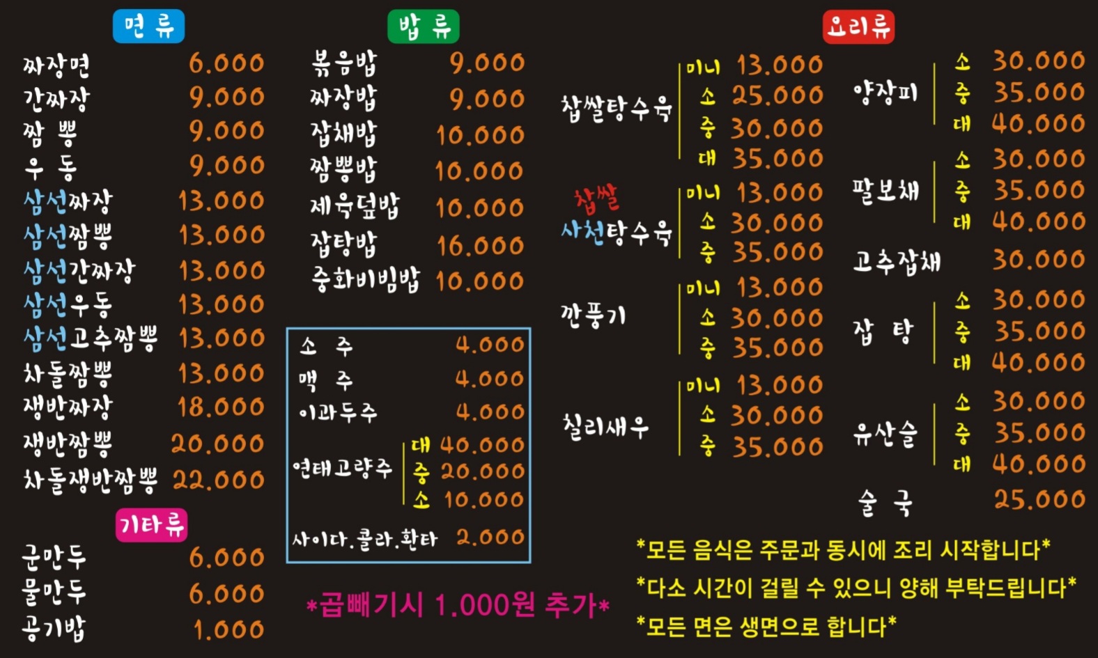 - 짬뽕면 9,000원
