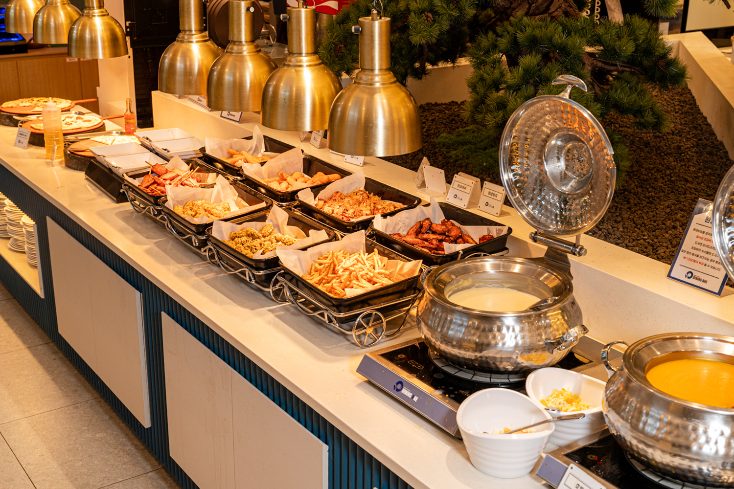 seayoan33오늘 생일이어서 다이닝원을 와 식사했지만 선물도 받아 기분도 좋고! ㅡ일단 다른지점 다이닝원과 크게 차이없는 종류가나옴 ㅡLA갈비가 나와 놀랐는데 간이 아주약간짜며 식감맛보통 ㅡ양념게장 양념은 맛있고 게장의 질은 좋음 ㅡ양념한 장어와 크림새우/연어등 해물은 대체적으로 맛있으나 연어초밥의 연어는 보통 ㅡ문어는 뷔페가면 무조건 먹는음식으로 꼬들꼬들/물기없는 문어를 좋아하는데 흐물거려 식감보통 ㅡ소세지보통.삼겹살수육 잡내는 없으나 뻑뻑 ㅡ부침개는 자체 수분이 많아 흐물함 ㅡ콜라와 환타는 싱거운 상태의 맛이라 뭐가 덜 첨가됨 ㅡ이미 만들어진 음식들의 수급은 나쁘지않으나 자체요리해야할 음식들의 상태개선이 필요한 상태임. ㅡ커피와 아이스티등 내려주는 코너가 있고 이건 메리트는큼