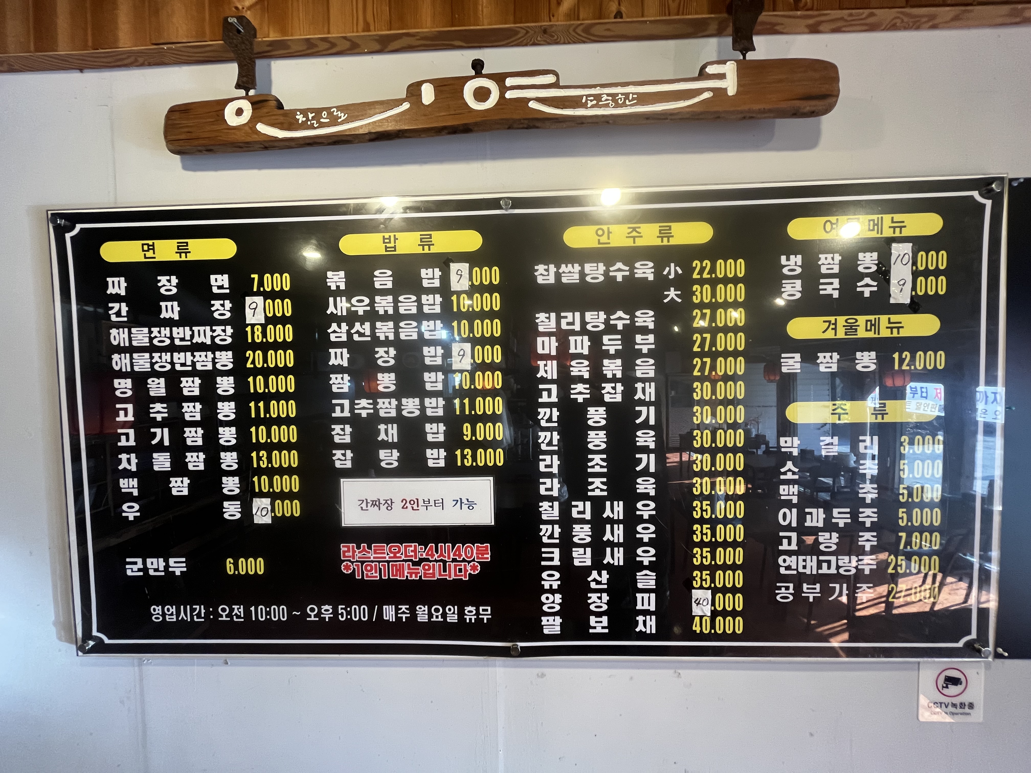 내돈내산 팩폭러제주 서쪽 마을의 평화로운 풍경 속에 위치한 명월반점 *매장 정보* * 영업시간: 10:00 ~ 17:00 (라스트 오더 확인 필요) * 휴무일: 매주 월요일 정기 휴무 * 특징: 매장 앞 넓은 주차 공간이 있어 초보 운전자도 편하게 방문할 수 있습니다. *비주얼부터 압도적인 짬뽕* 큼지막한 새우와 통통한 주꾸미, 신선한 홍합이 아낌없이 들어가 있어요. 국물은 색깔만큼이나 진하고 칼칼해서 해장용으로도 제격입니다. *짜장면* 위에 올라간 완두콩 고명이 정겨운 느낌을 더해줍니다. 소스가 너무 달지 않아 물리지 않고, 면과 소스의 조화가 좋습니다. 단, 고기가 좀 질기더라고요.🤭 직원분들 모두 호탕하고 친절합니다.